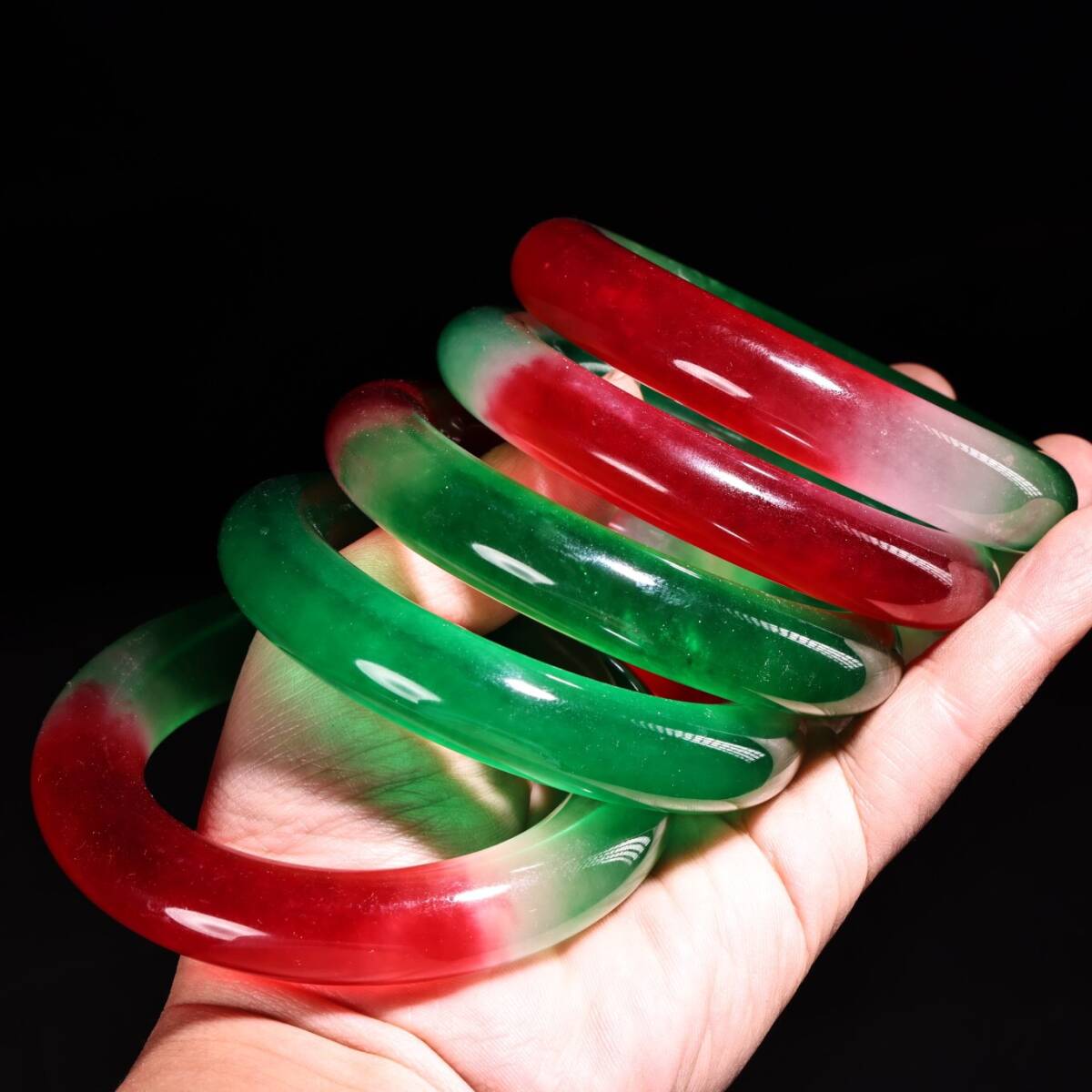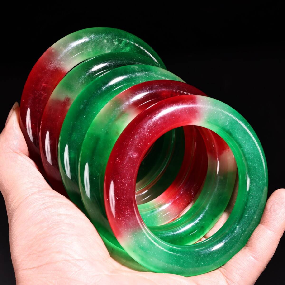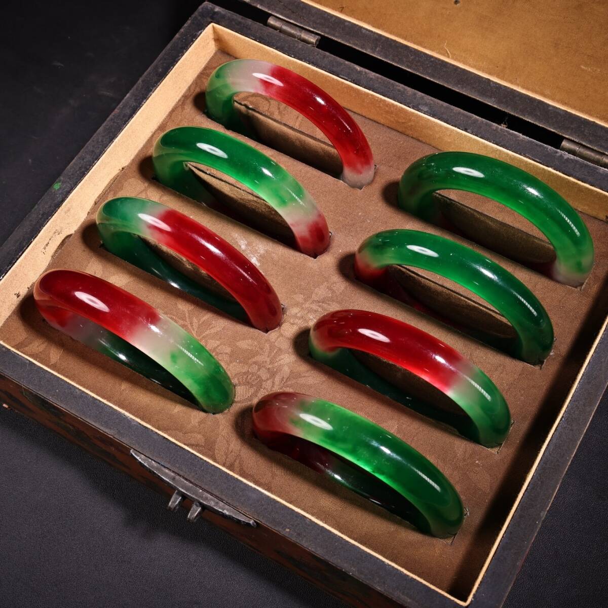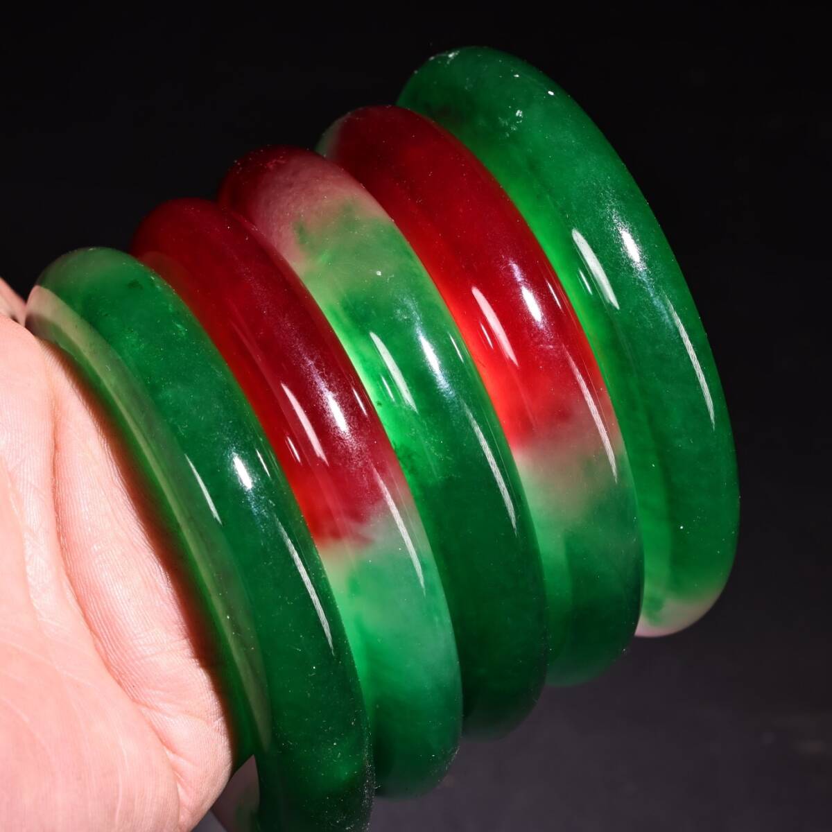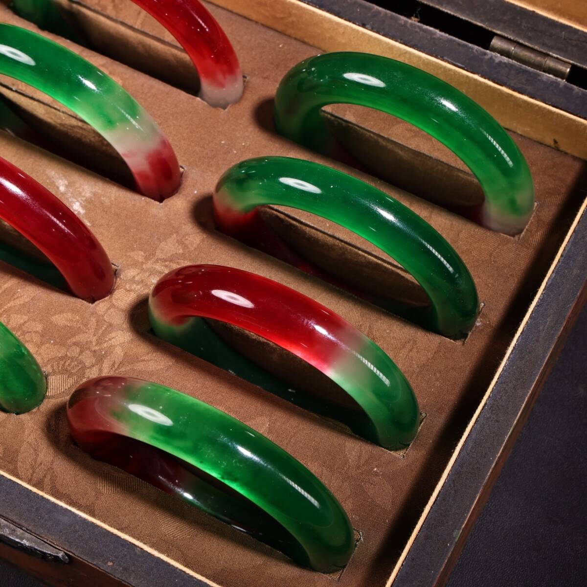 ▽鴻▽ 翡翠製 細密彫 冰種 腕輪 箱付 根付 裝身具 古賞物 古董品 時代物 稀少珍品 中国古玩 中国古美術