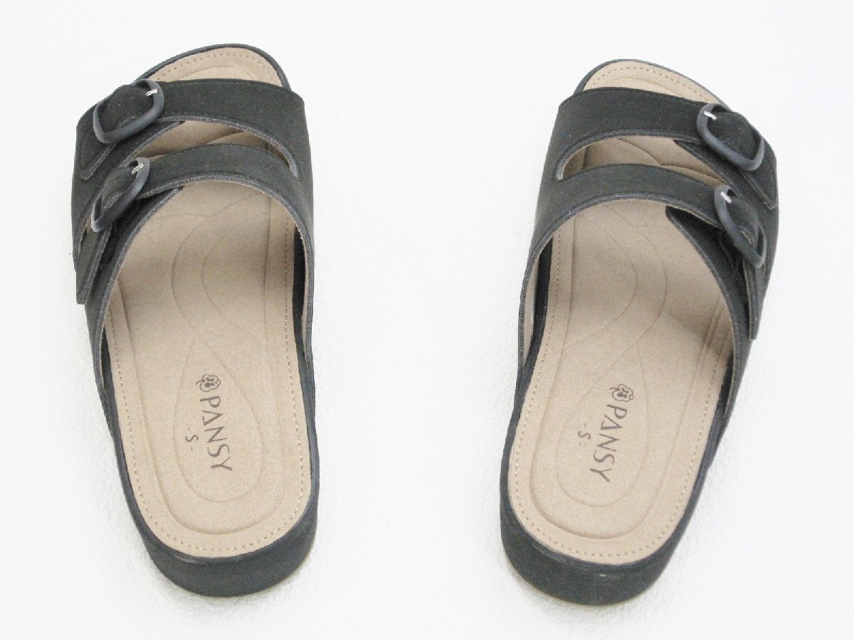 | ♪♪♪ 商品の詳細案内 ♪♪♪ | ★Pansy パンジー 足型オブリークトゥ 2本ベルト ヌバック調 ゆったり ヘップ【婦人 レディース】Laサンダル 黒 22.5cm/S 7セ |