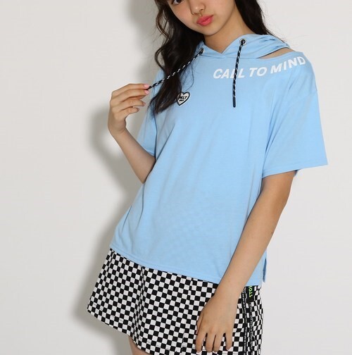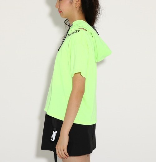 メッシュの裏地付きフードとオープンネックデザインがポイントのTシャツ。