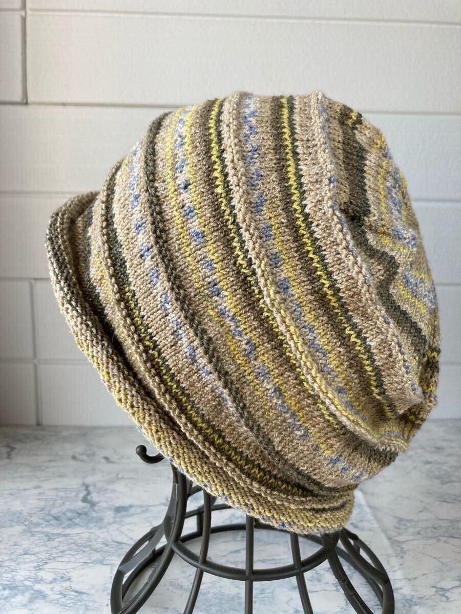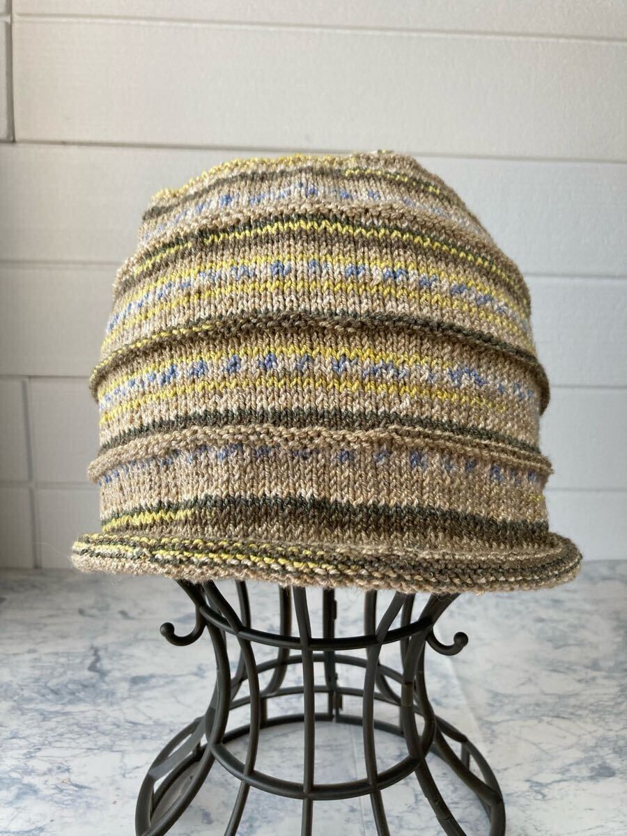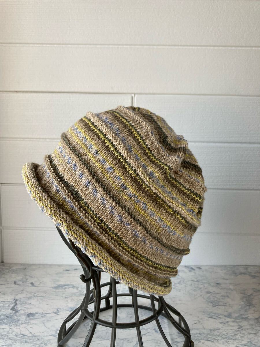 長くしましたので被り口でクルクル巻いてボリュームを出したり、後ろにぐっと引っ張ってクシュっと被っても。色々アレンジしてください。男性でもじゅうぶんのサイズです。