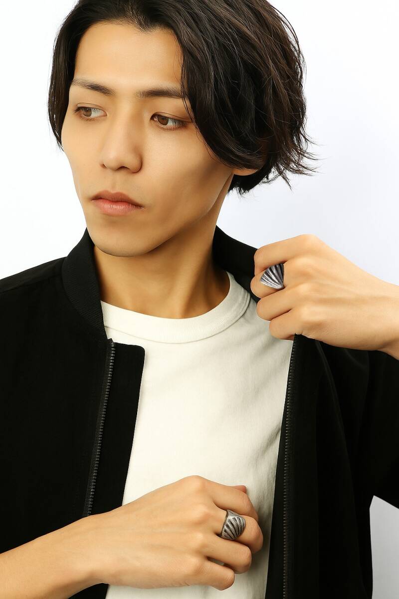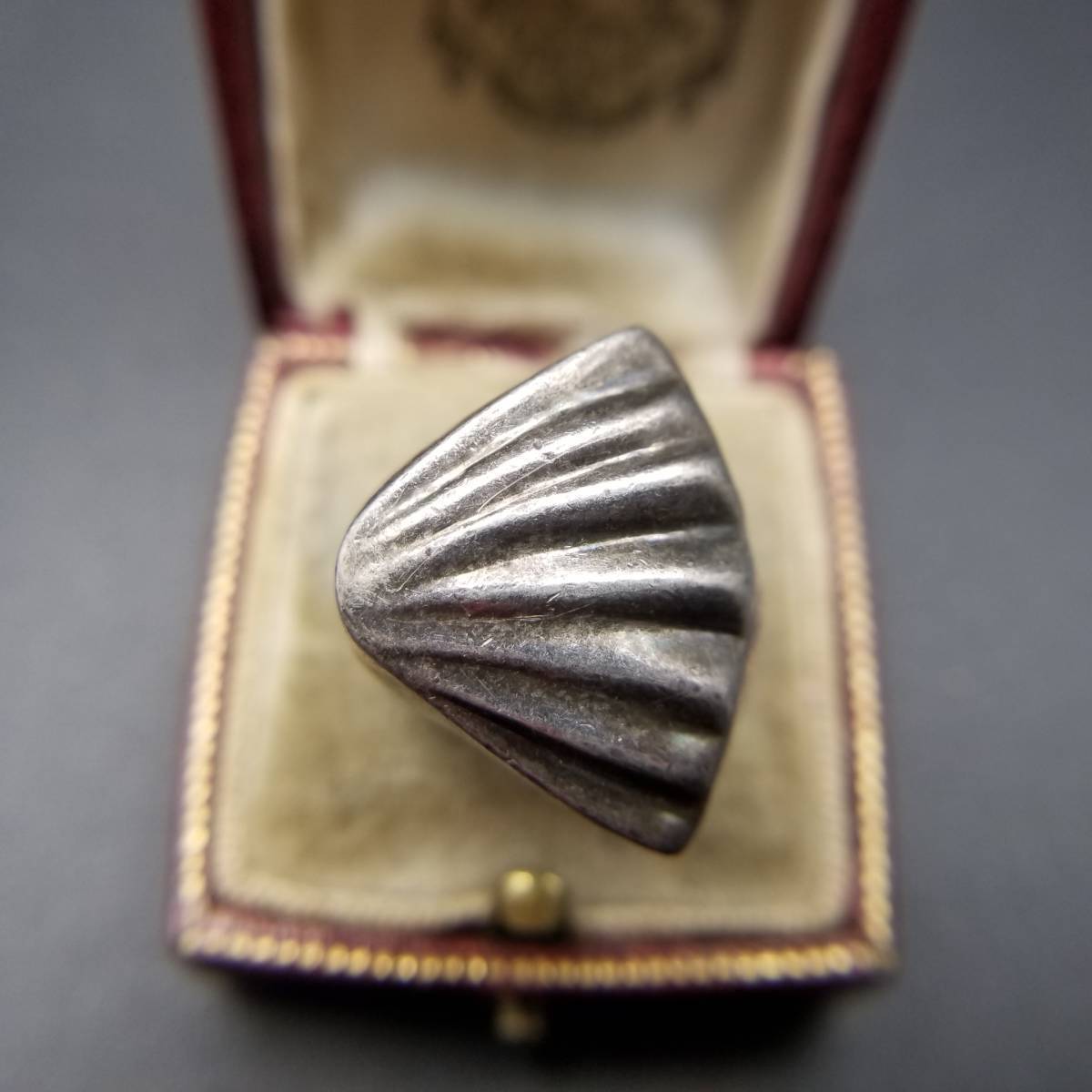 モダニスト ジグザグ アシンメトリー 貝殻 925 シルバー ヴィンテージ リング 11.6g 銀 指輪 重厚感 個性派 メンズジュエリー Y12-B