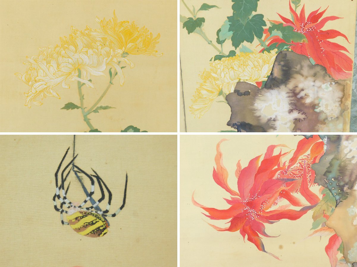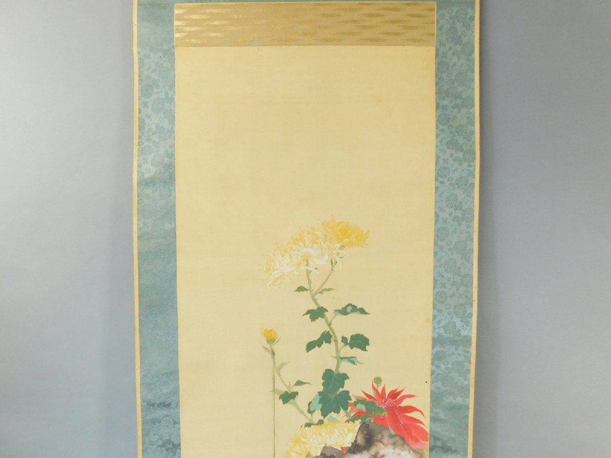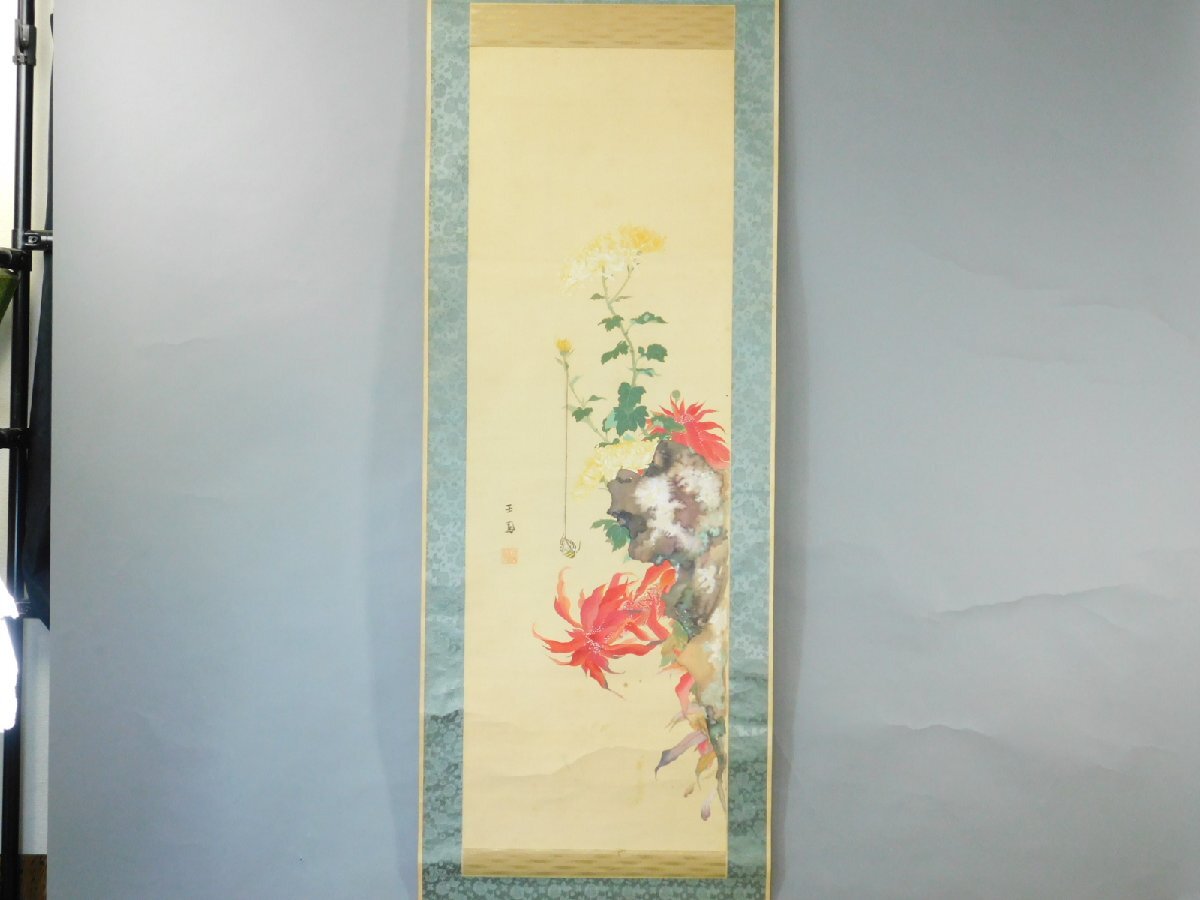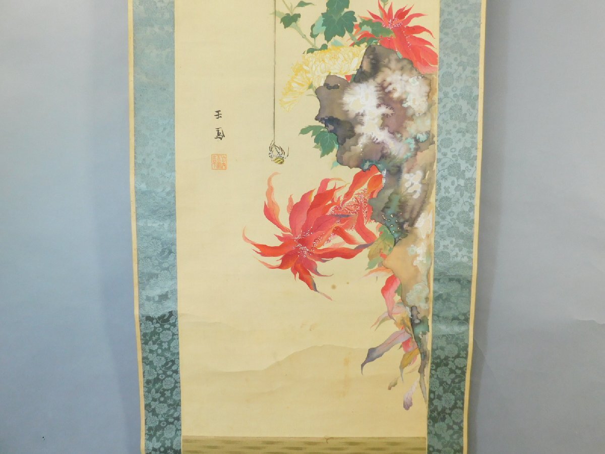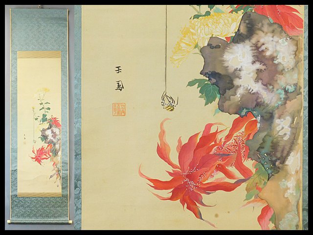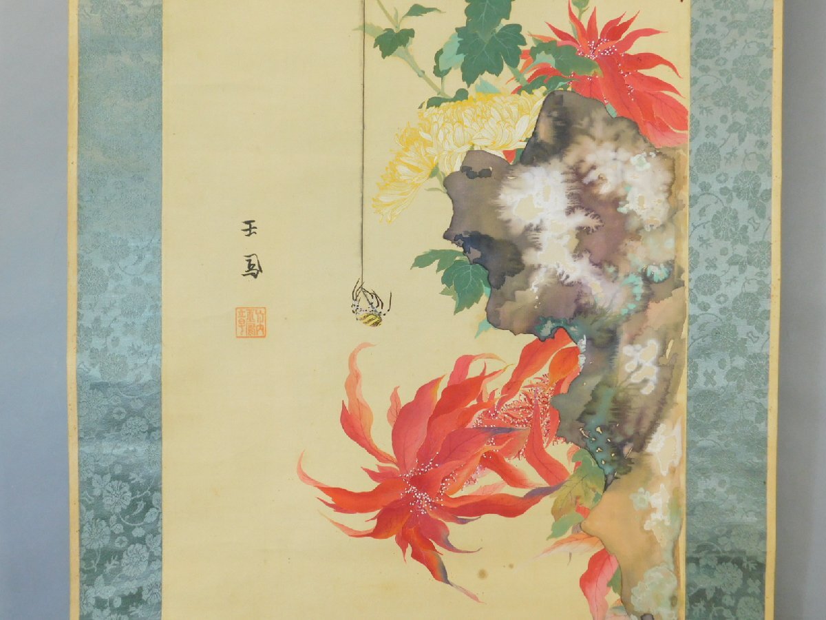 玉鳳 在銘 蜘蛛の糸 日本画 絹本 軸装 掛軸 OK7020