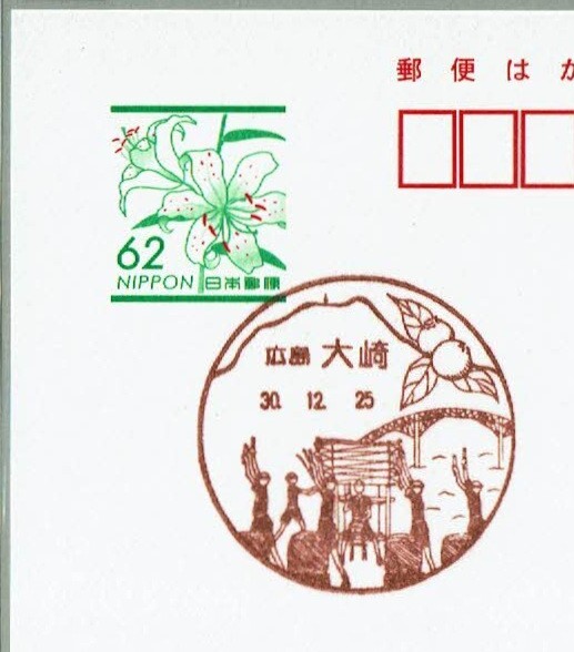 2018(平成30)年12月25日から使用開始された、風景印を官製はがきに使用開始の初日に押印。