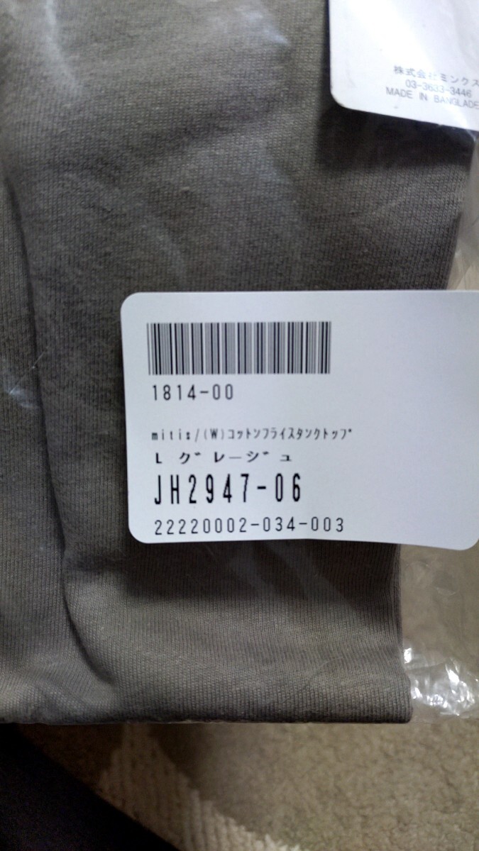 ★未使用★mitis★コットンフライスタンクトップ★Lサイズ★グレージュ★