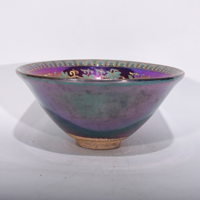 永し宋時代 建窯 七彩釉 葡萄紋 斗底碗 古陶磁器 陶芸 皿 中国陶瓷器 唐瓷 置物擺件 古美術品 古賞物 収集 旧家蔵出 中国唐物 A80