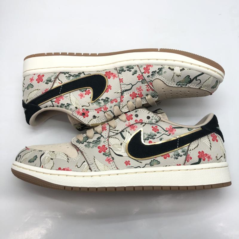 | 209999628533)Rui Hachimura × Nike Air Jordan 1 Retro Low OG SP "Cranes" サイズ27.5cm HV8293-100 ベージュ×花柄 |