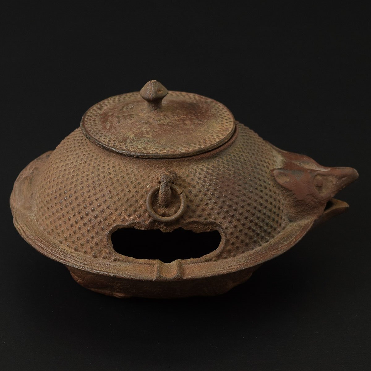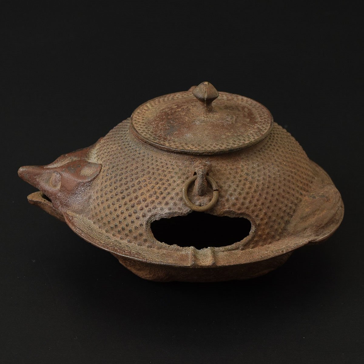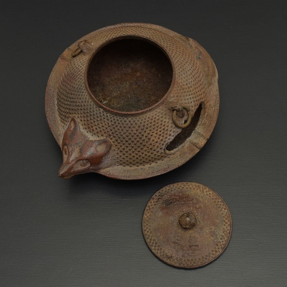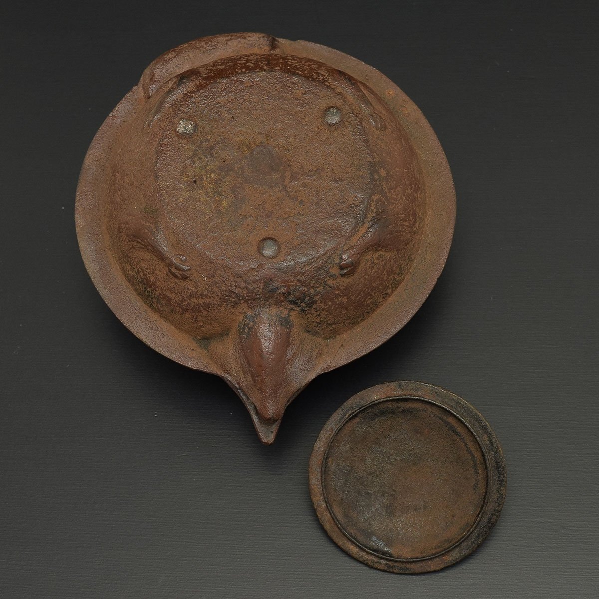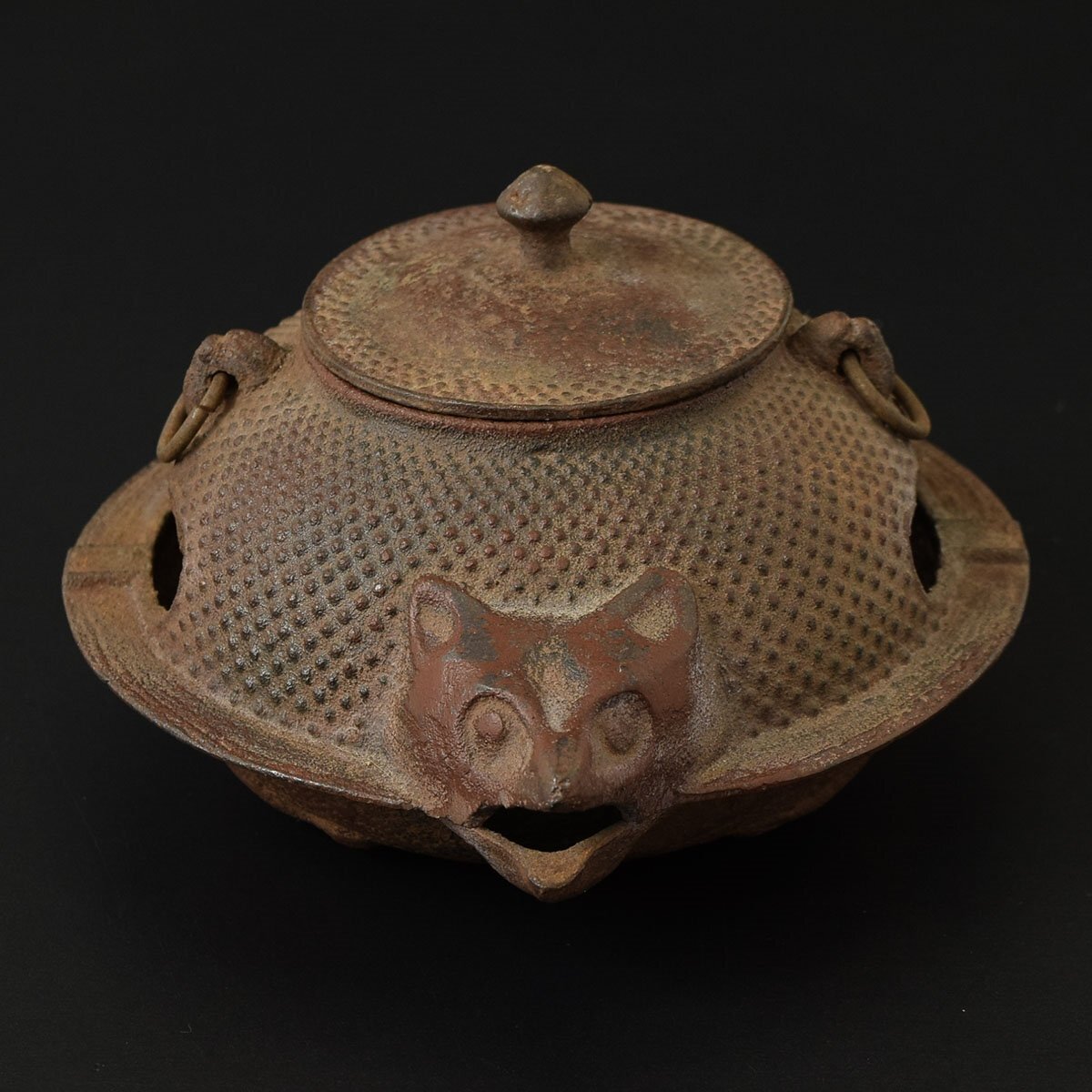 ●558662 南部鉄器 たぬき ぶんぶく茶釜 灰皿 煎茶道具 鉄器 アンティーク 狸 縁起物 置物 喫煙具