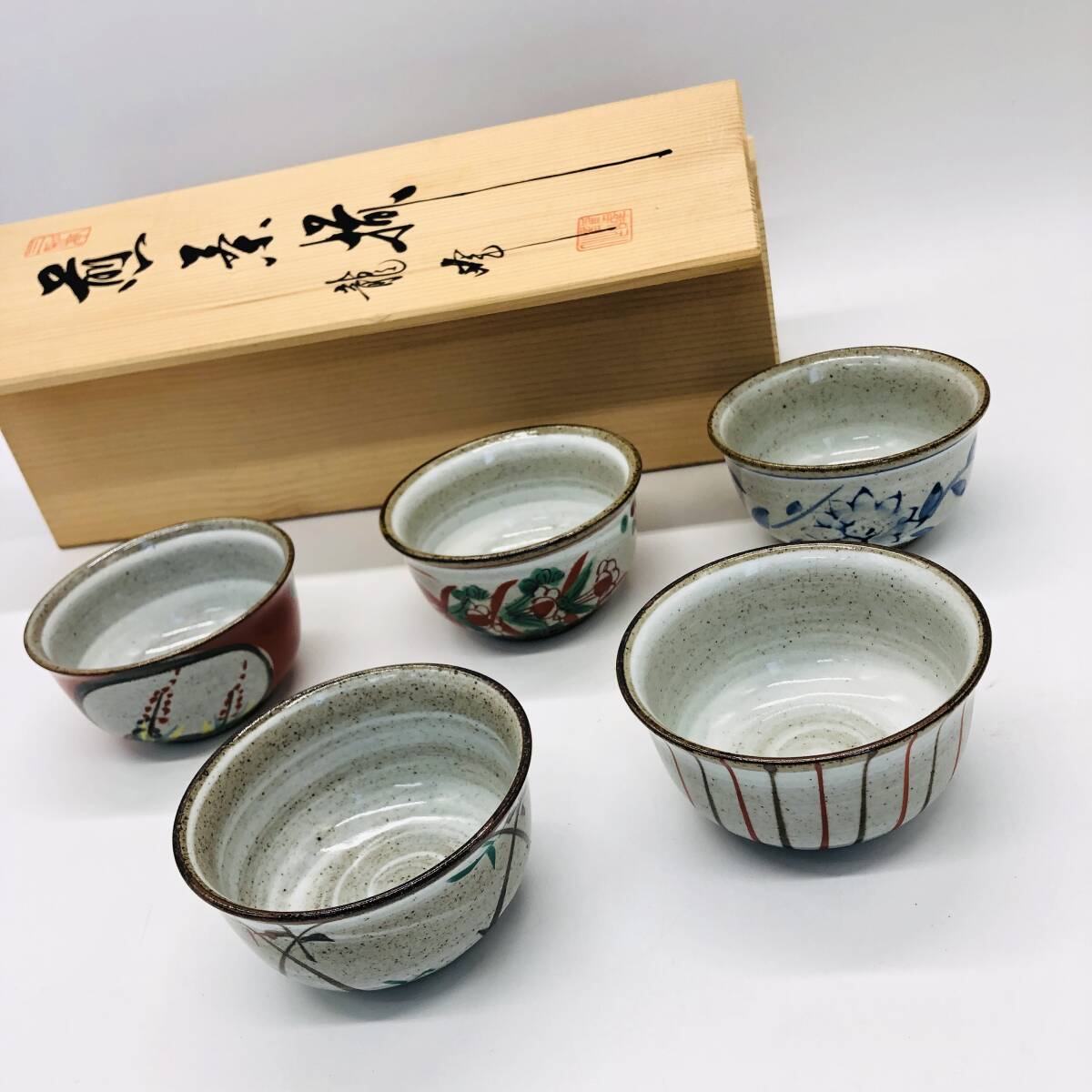 | 保管品 龍峰造 龍峰窯 煎茶揃 乾山五窯煎茶 湯呑 5客 5つ 五客 湯呑み 湯のみ 陶器 箱付 | ||