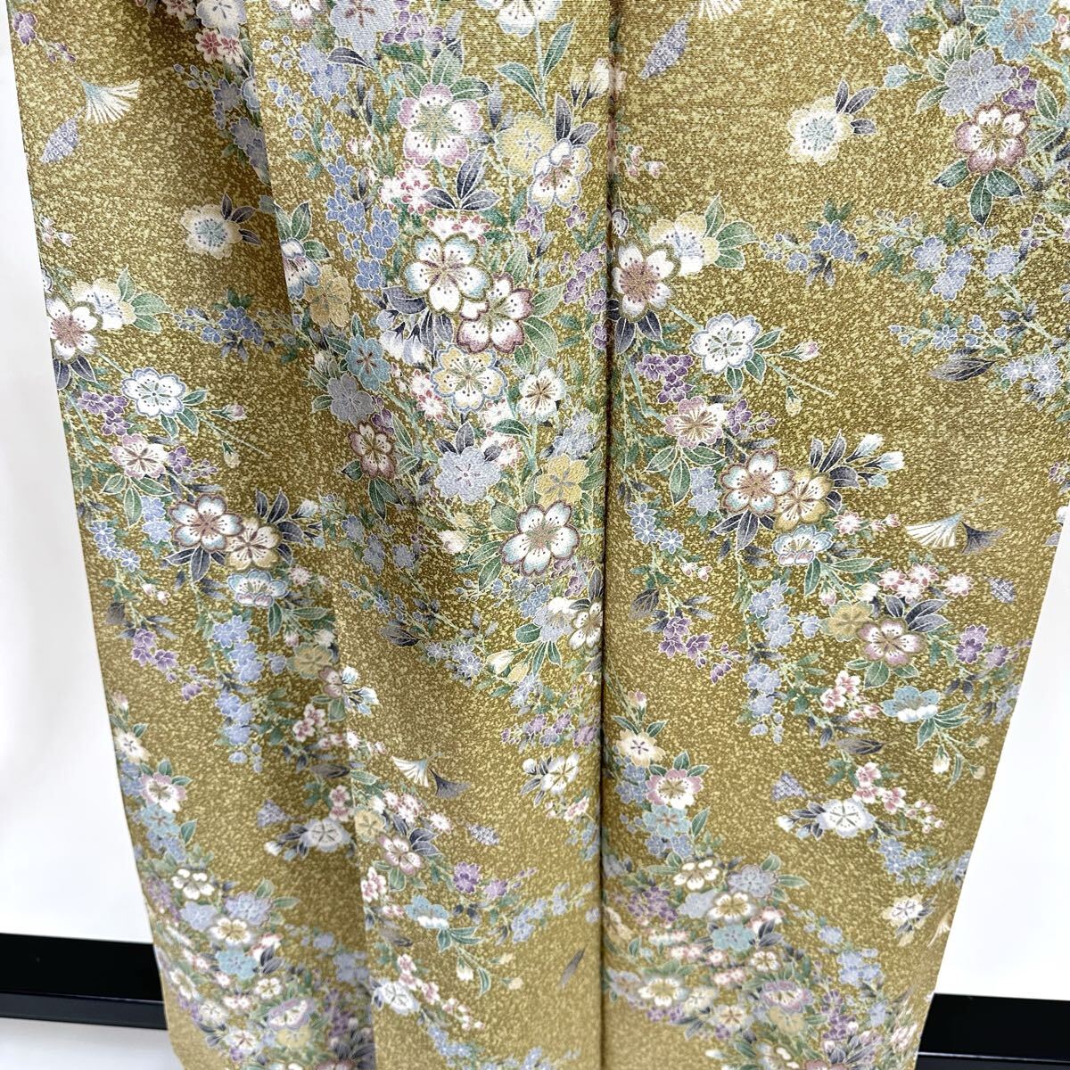 【七福】c698 正絹 小紋 袷 着物 仕立て上がり 桜 草花 逸品 身丈 約159.5cm 裄 約64.5cm
