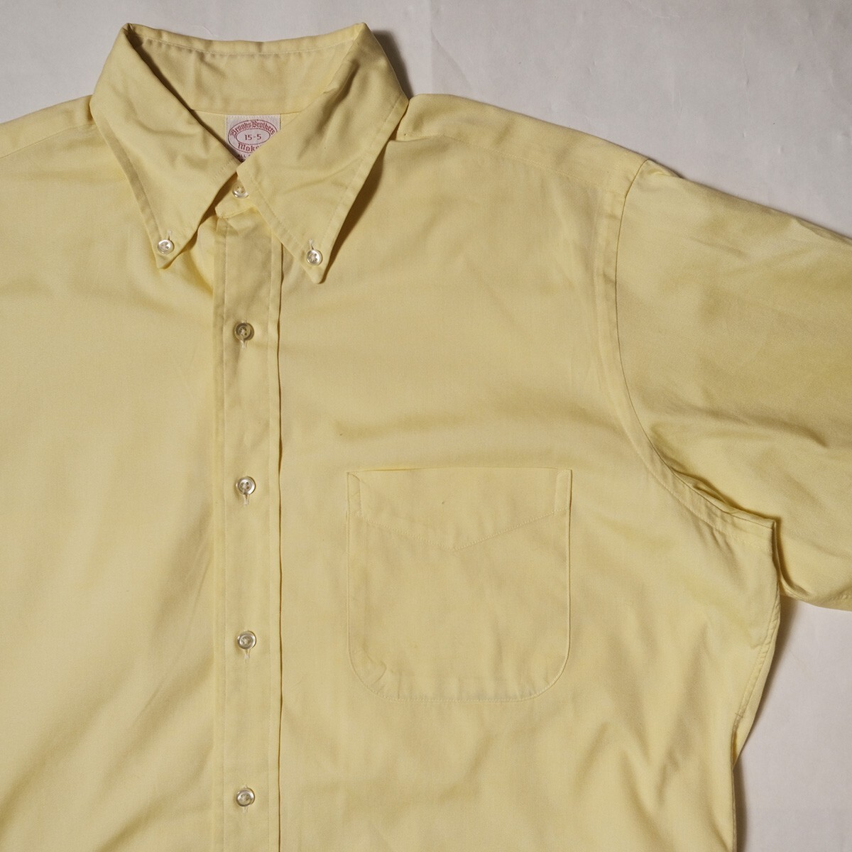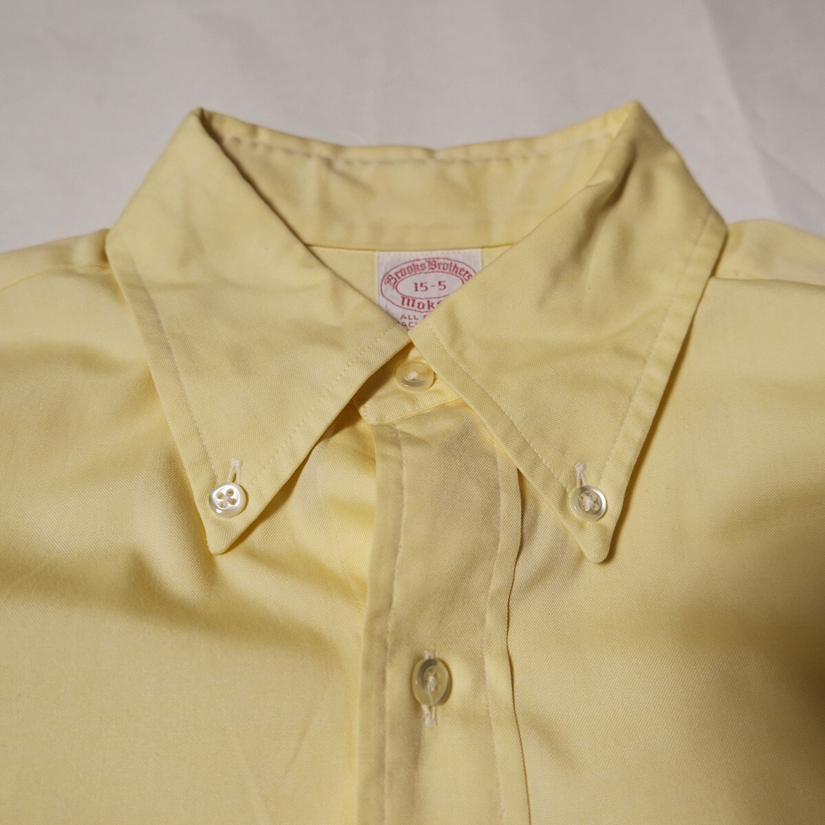 90’s USA製 ブルックスブラザーズ Makers ピンオックスフォード ボタンダウンシャツ (15-5) 黄 旧タグ アメリカ製 ポロカラー