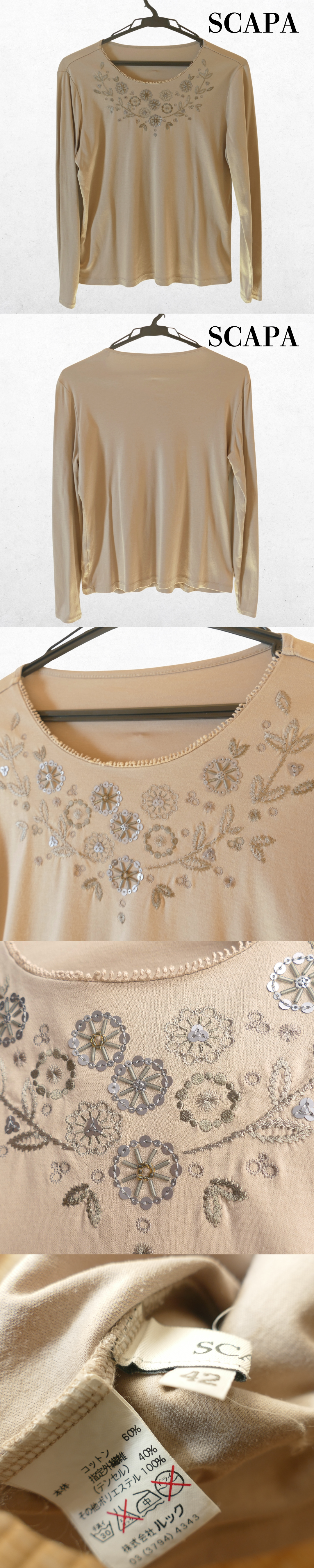 SCAPA ビーズ刺繍長袖Tシャツ(サイズ42・日本製・伊勢丹で購入)