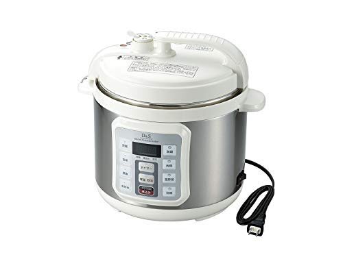 ブランド:D&S(ディーアンドエス)≪商品仕様≫商品サイズ:幅約319×奥行約284×高さ約292mm商品重量:約4500g容量:調理容量(圧力調理)/約2.67L、満水容量/4.0L電源:AC100V、50/60Hz消費電力:800W有効コード長さ:約1.1mタイマー:24H使用最高圧力:60kPa ゲージ圧材質:ステンレス、鉄、ABS樹脂他セット内容:本体、内なべ、しゃもじ、計量カップ、ガラスふたパッキン(予備)、オリジナルレシピ、簡単手順シート、取扱説明書(保証書兼用)原産国:中国≪箱サイズ≫サイズ:約290x290x375mm総重量;約5200g調理用具・器具
