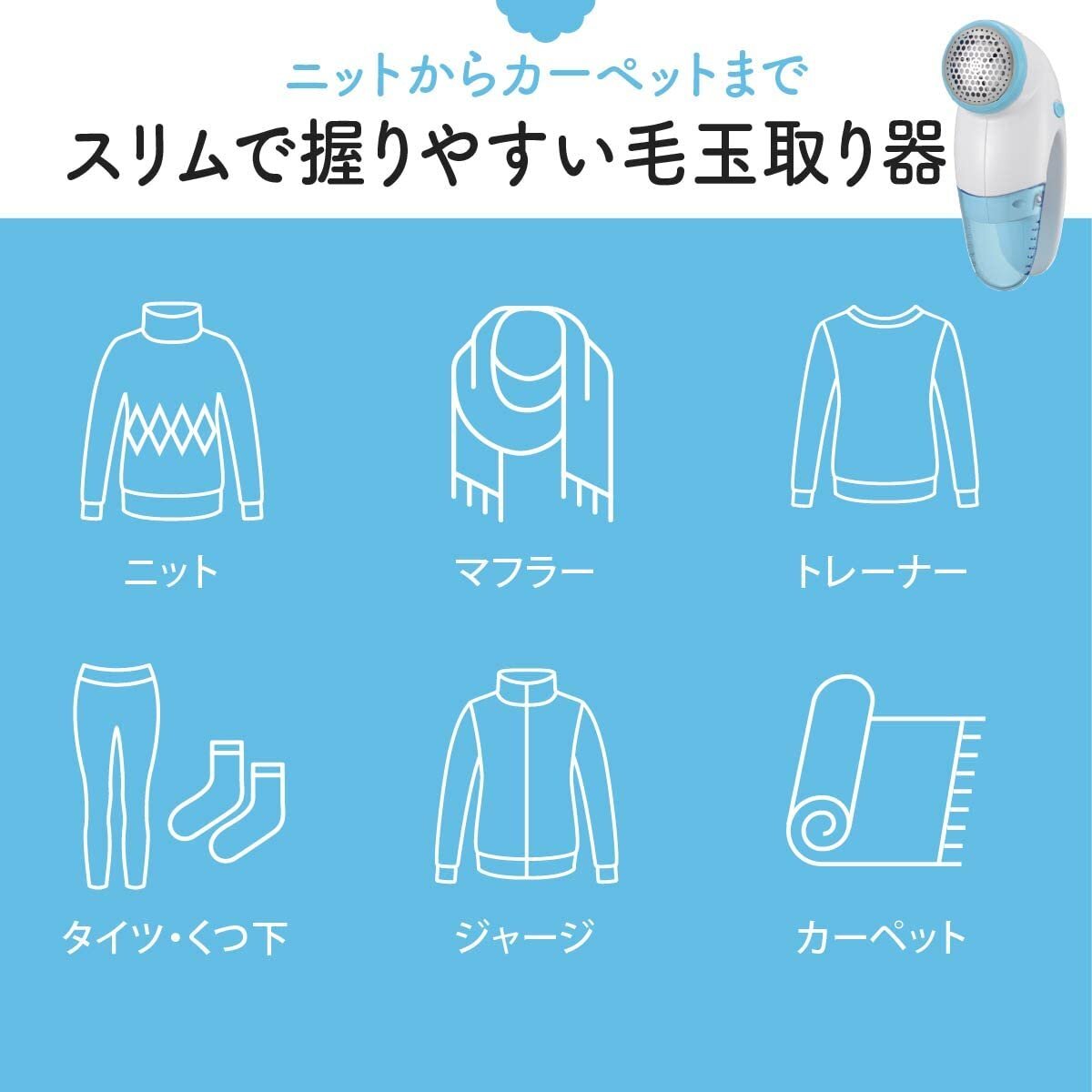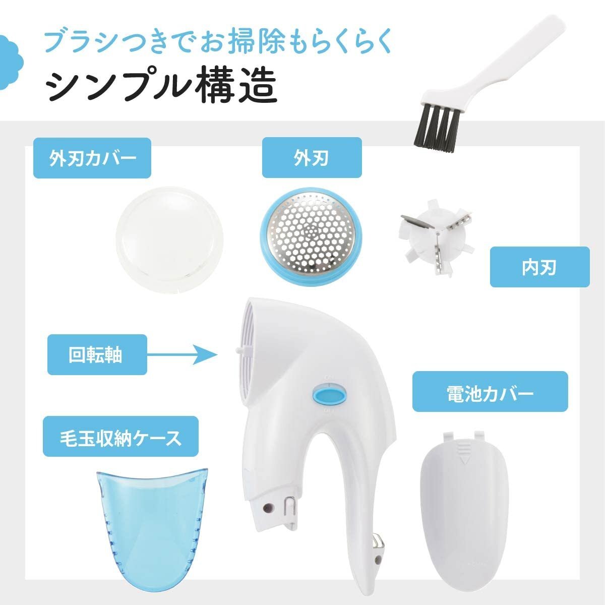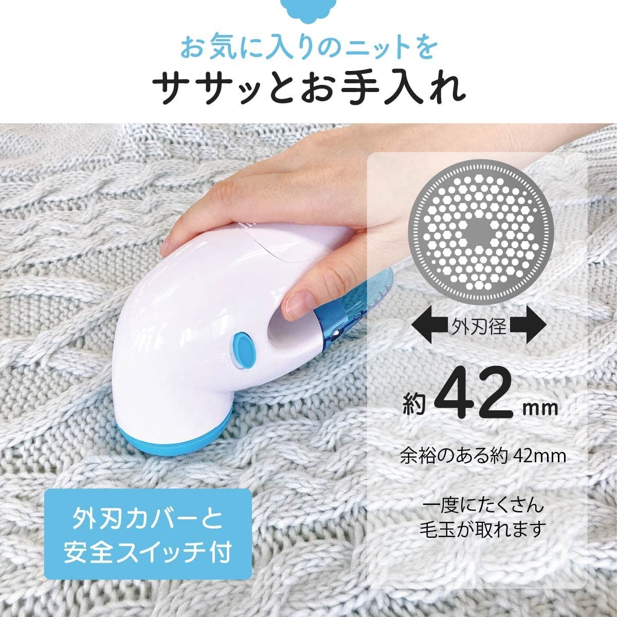 ブランド:オーム(OHM)カラー:ブルーサイズ:外刃径42mm●しっかり握れるスリムグリップ●余裕ある約42mm外刃で一度にたくさん毛玉が取れます●安全スイッチ付きで外刃を外した状態のときは電源が入りません●保管時も安心、外刃カバー付き●着脱式でお手入れ簡単な毛玉収納ケース●単3乾電池2本使用(電池別売)【特長】◆しっかり握れるスリムグリップ◆余裕ある約42mm外刃で一度にたくさん毛玉が取れます◆安全スイッチ付きで外刃を外した状態のときは電源が入りません◆保管時も安心、外刃カバー付き◆着脱式でお手入れ簡単な毛玉収納ケース◆単3乾電池2本使用(電池別売)