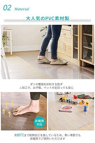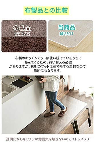 ブランド:Marveluxカラー:クリアサイズ:60×240cm☆新品発売限定クーポンは今だけ☆おすすめのキッチンマット★【PVC素材・拭くだけ】PVC(ポリ塩化ビニール)は水や汚れを吸わない素材なので汚れても拭き取るだけでOK。布製マットのように洗濯や染め抜きが不要でお手入れがとても簡単で扱いやすい。より安全性高い素材を採用、本製品はSGSの検証で、抗菌・防臭の合格基準より2.8倍以上高く完成しました!SGS認証済無毒のエコ素材です。カビやダニも発生せず、衛生的に使うことができます。子どものいるご家庭には安心な素材です。