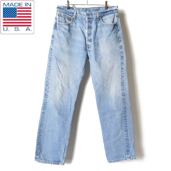 貴重な2002年代初頭の最終アメリカ製501のオリジナル品。色落ち加減が魅力的なブルージーンズです。