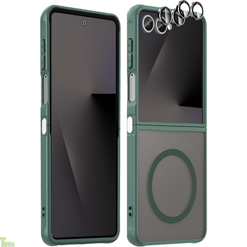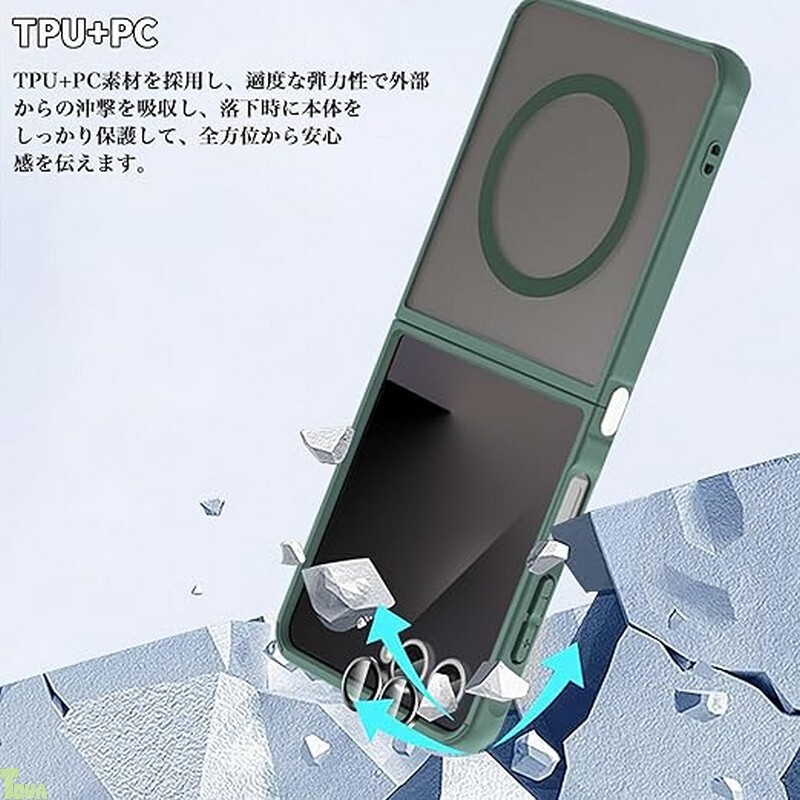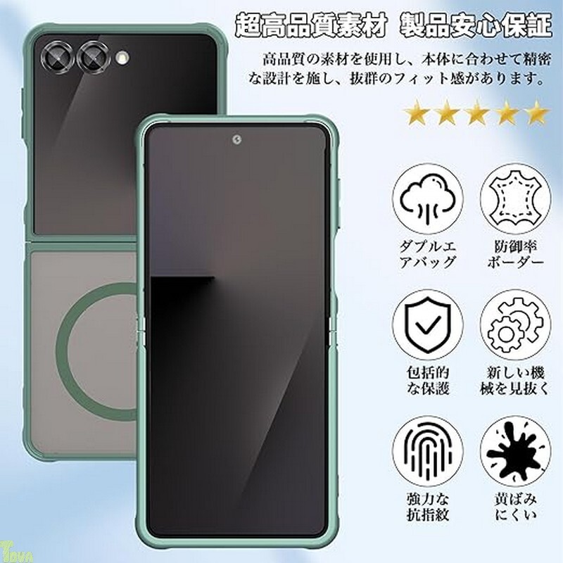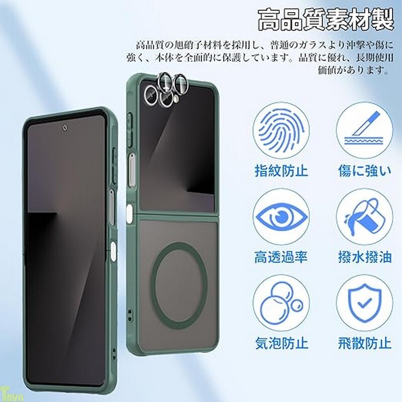 グリーン カメラフィルム 2枚付き 高品質 PC TPU 素材 MagSafe対応 ギャラクシー フリップ Galaxy Z Flip 7 保護 バンパー ケース カバー