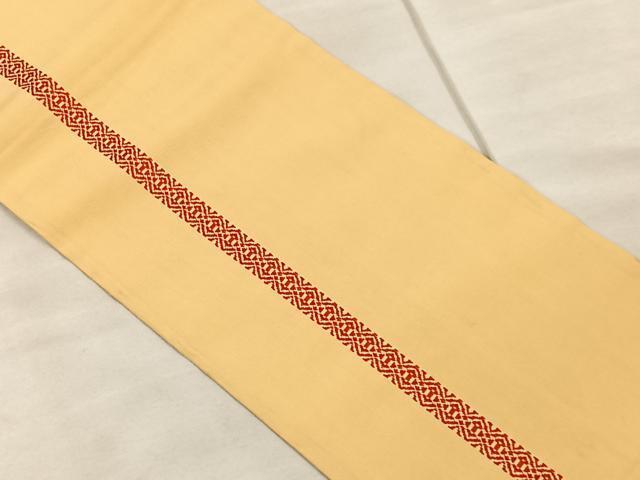 | 【正絹】 詳細に関しましては、画像をご確認ください。 本場筑前博多織は、 福岡県福岡市博多区やその周辺で生産される絹織物です。 仏具のひとつである独鈷、華皿を基にした幾何学模様が織られています。 江戸時代に筑前藩主だった黒田長政が幕府への献上品にしたことから、 博多献上、献上博多とも呼ばれます。 横畝が際立って見える経畝織りという織りになっています。 30〜60本の細い経糸を使うため、こしやはりがあり、 地合が硬く、光沢感があります。 きちんと締まり、くずれにくい、締めやすい帯といわれています。 大変上質な逸品になります。 お安く出品致しますので、是非この機会にいかがでしょうか?