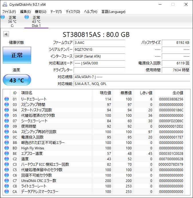 | ★3.5インチ SATA SEAGATE HDD ST380815AS 7634時間 中古品★ | |||