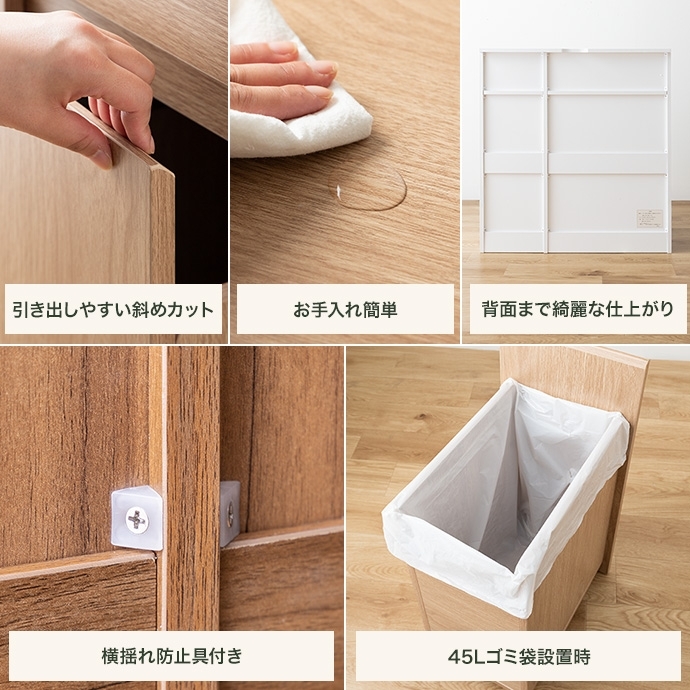 分別がしやすい3連タイプを用意し、面倒なゴミ捨てもスムーズ。