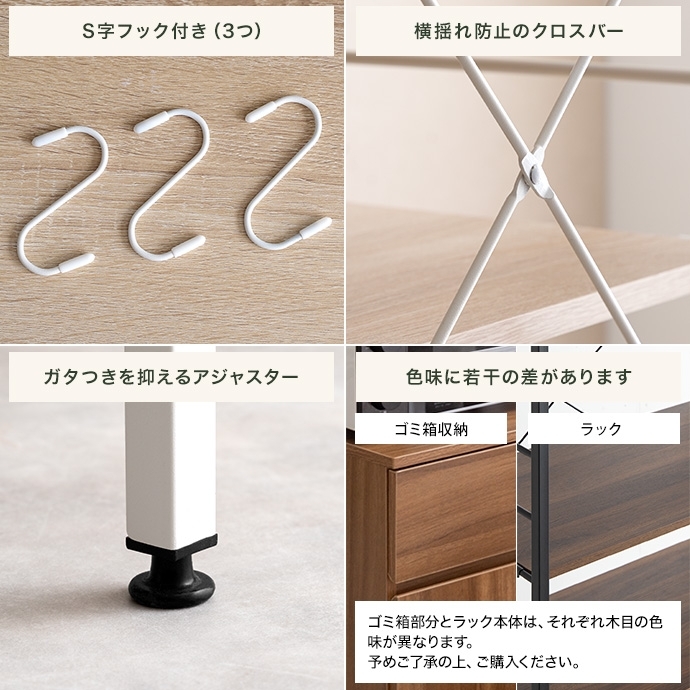 ゴミ箱に見えないデザインと使いやすさが魅力のゴミ箱付きキッチンラック。