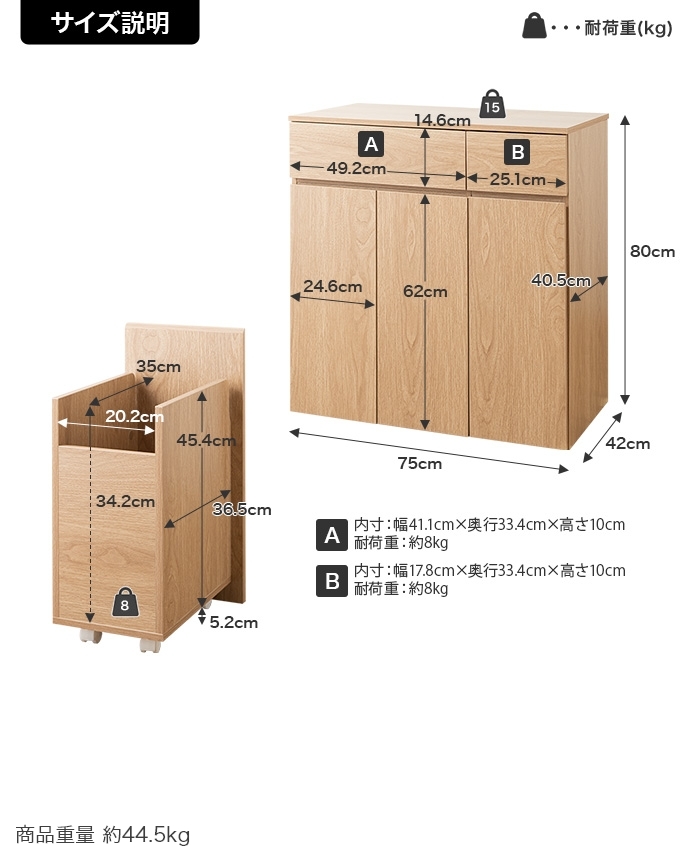 サイズ 幅80cm×奥行45cm×高さ170cm