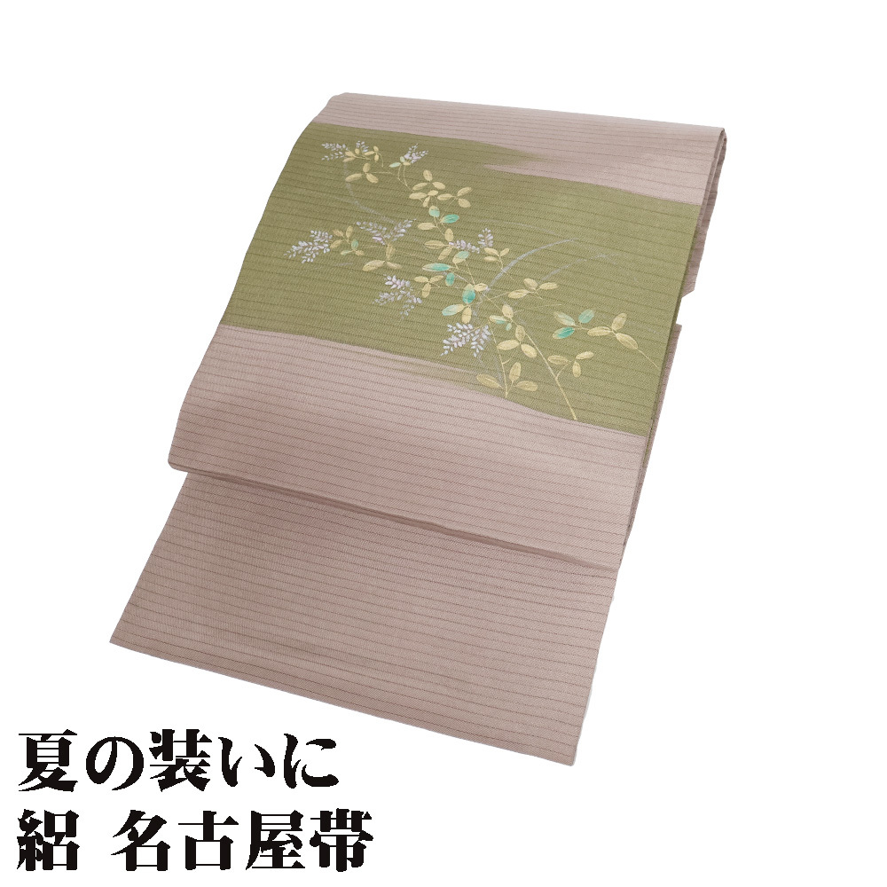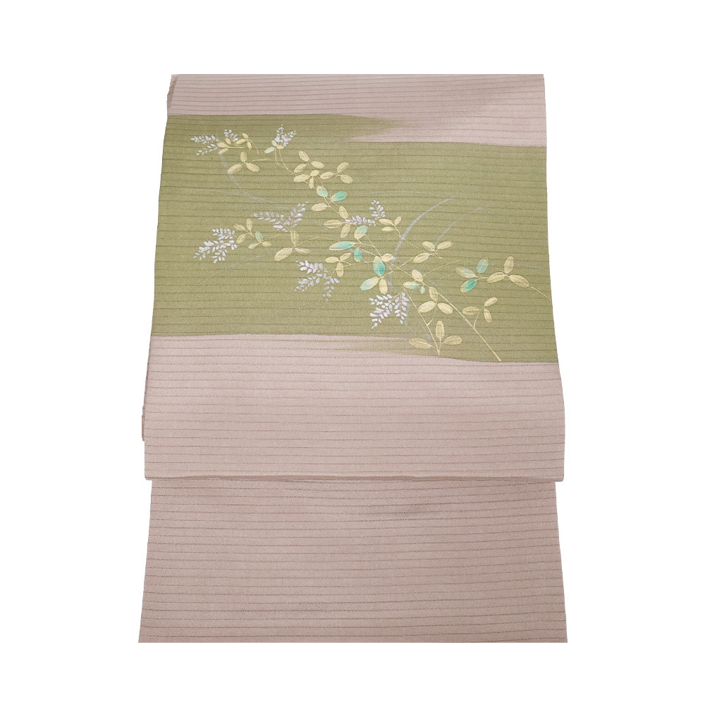 | 絽 名古屋帯 夏帯 赤茶紫・緑暈し地 萩 仕立て上がり | |