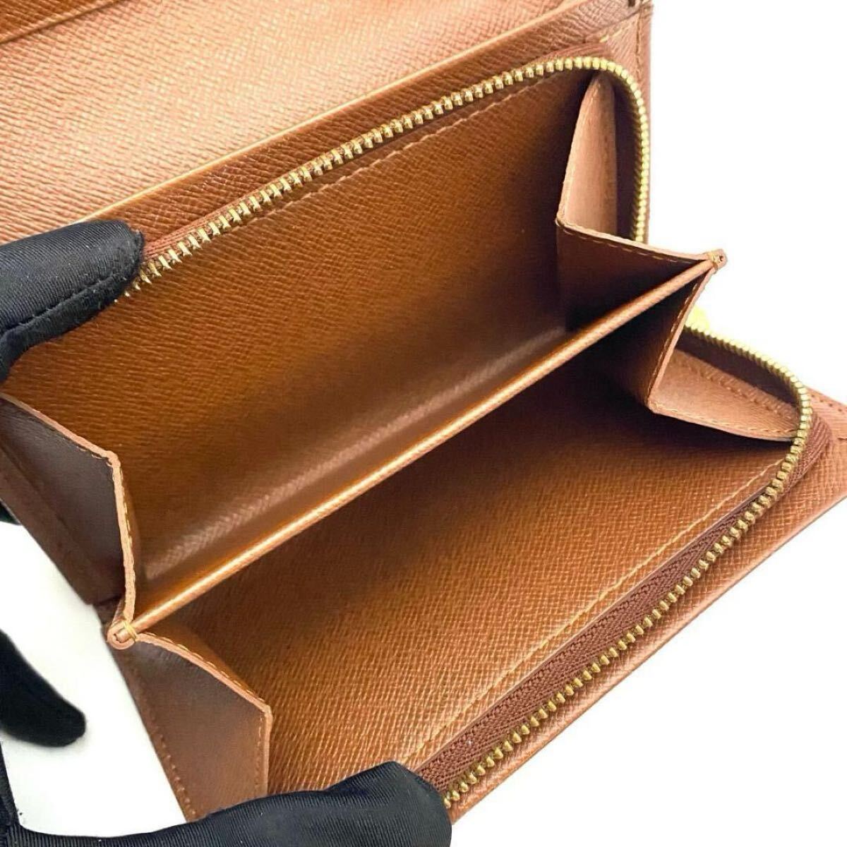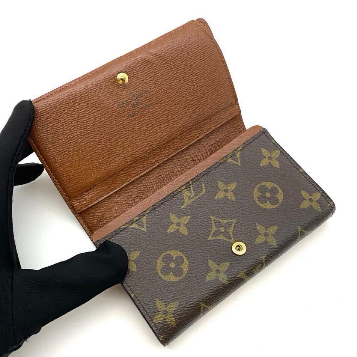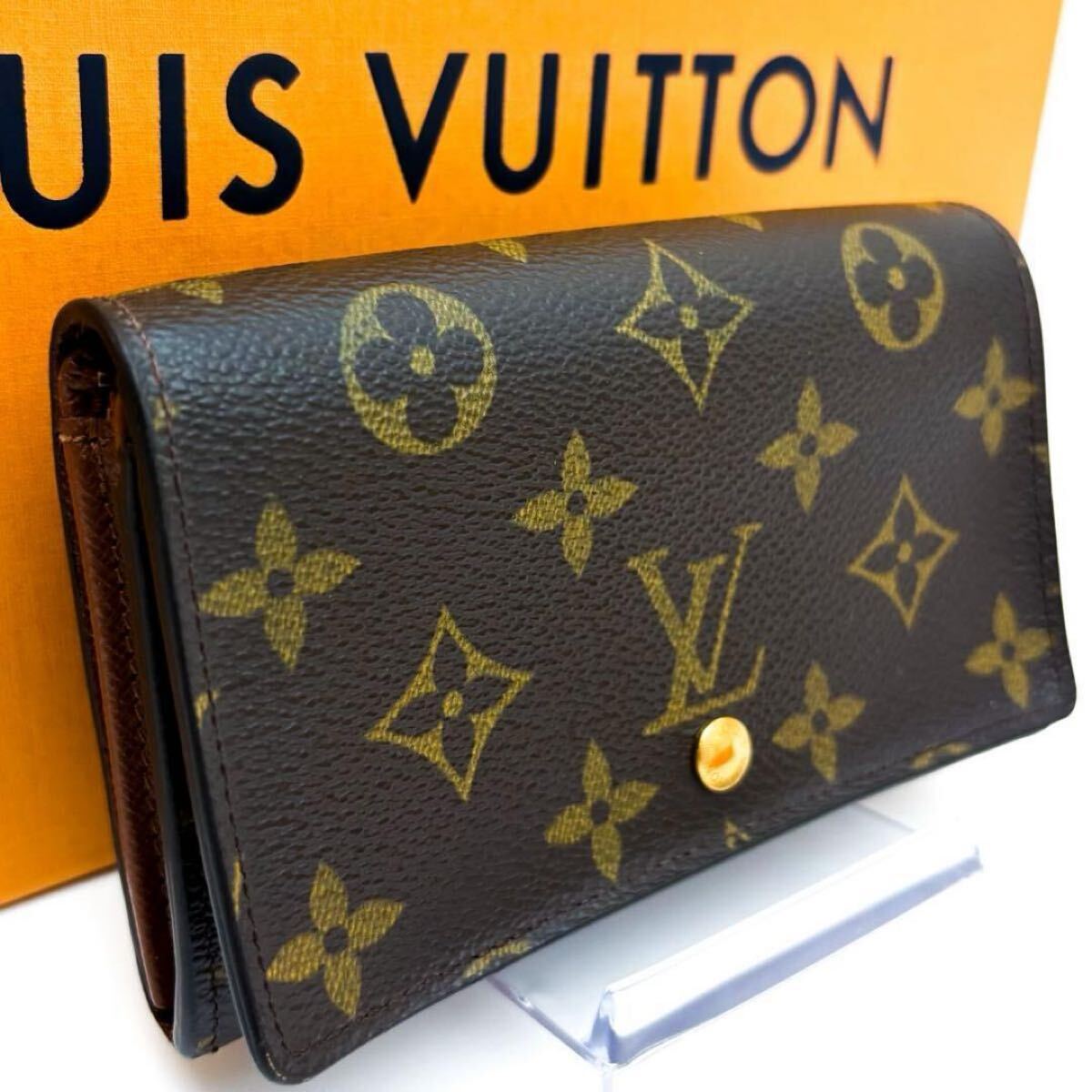 【美品】ルイヴィトン LOUIS VUITTON モノグラム ポルトモネビエ トレゾール 二つ折り財布 お札入れ ゴールド金具 男女兼用 ブラウン 茶色