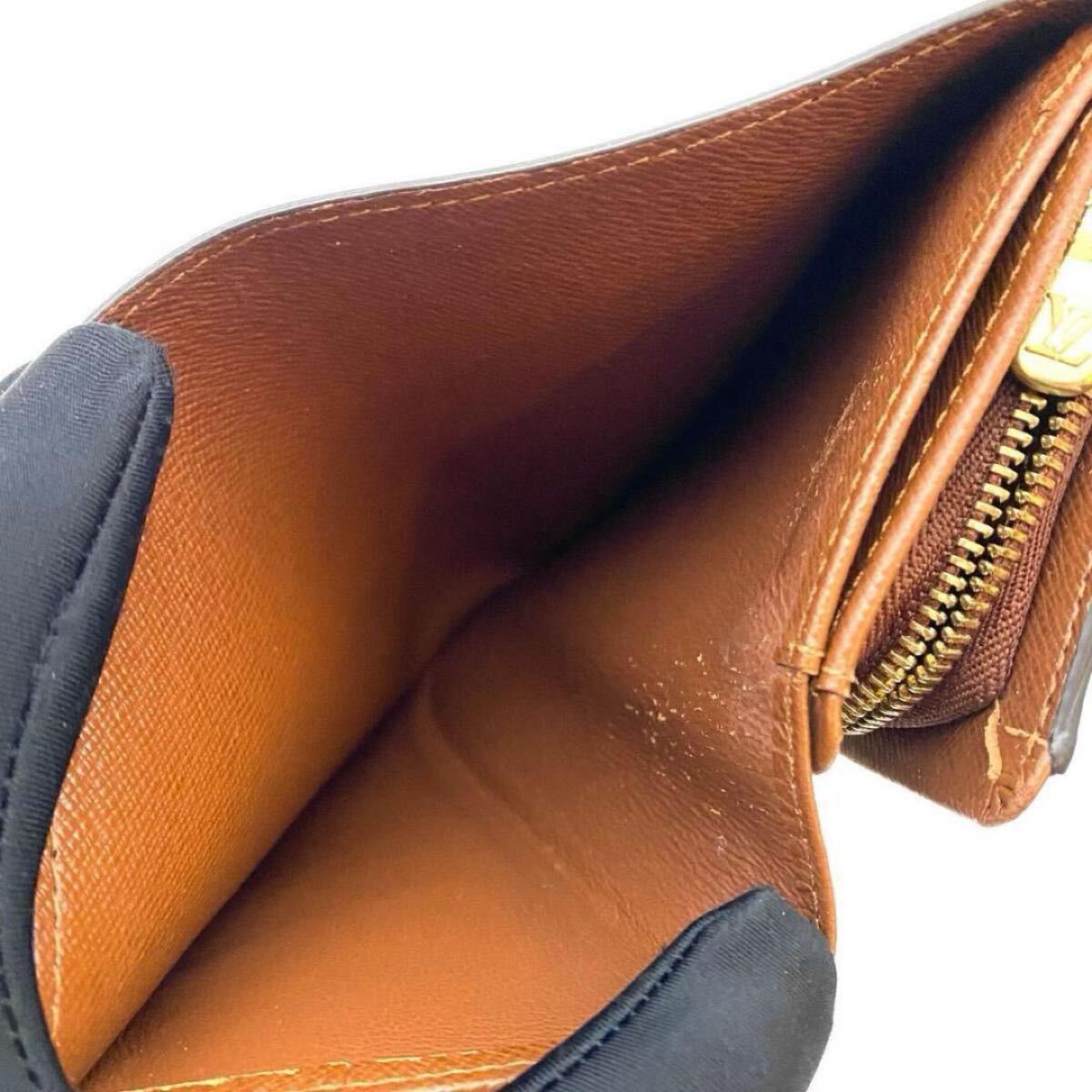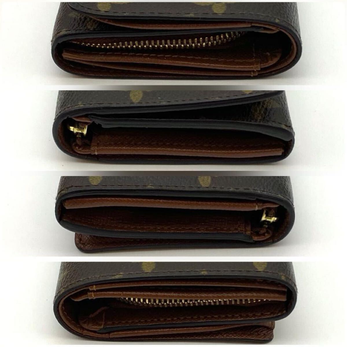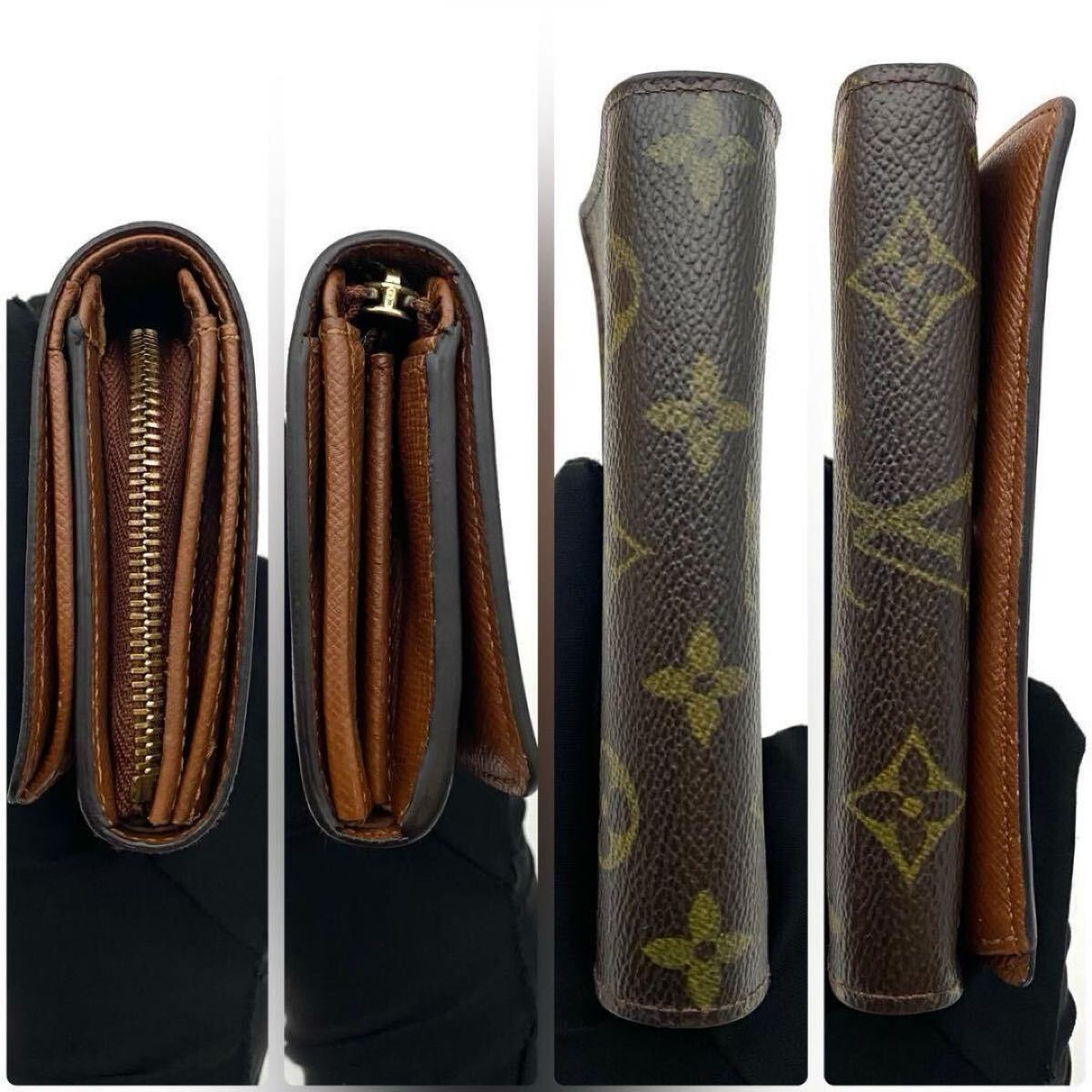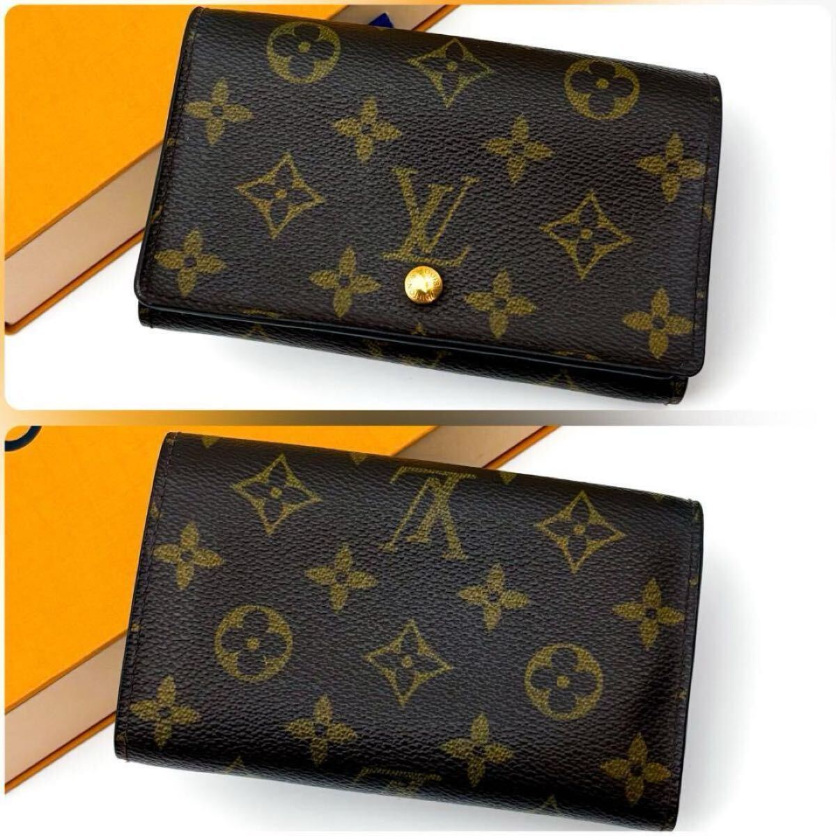 【美品】ルイヴィトン LOUIS VUITTON モノグラム ポルトモネビエ トレゾール 二つ折り財布 お札入れ ゴールド金具 男女兼用 ブラウン 茶色