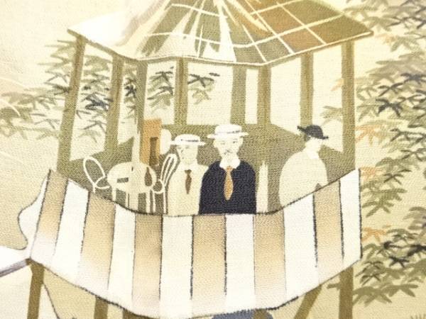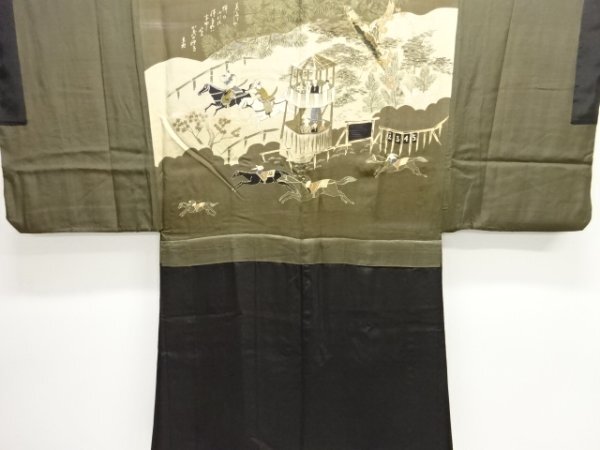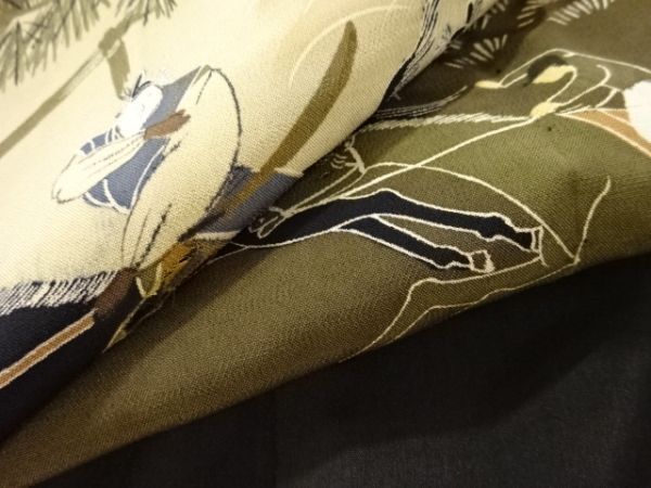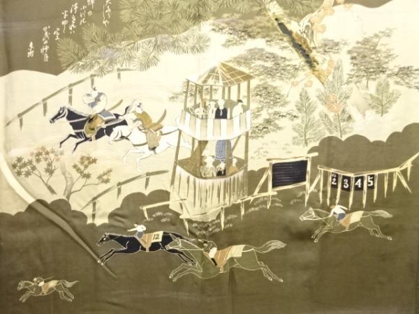 ys7478679; 競馬模様肩裏紋付羽二重男物羽織【アンティーク】【着】