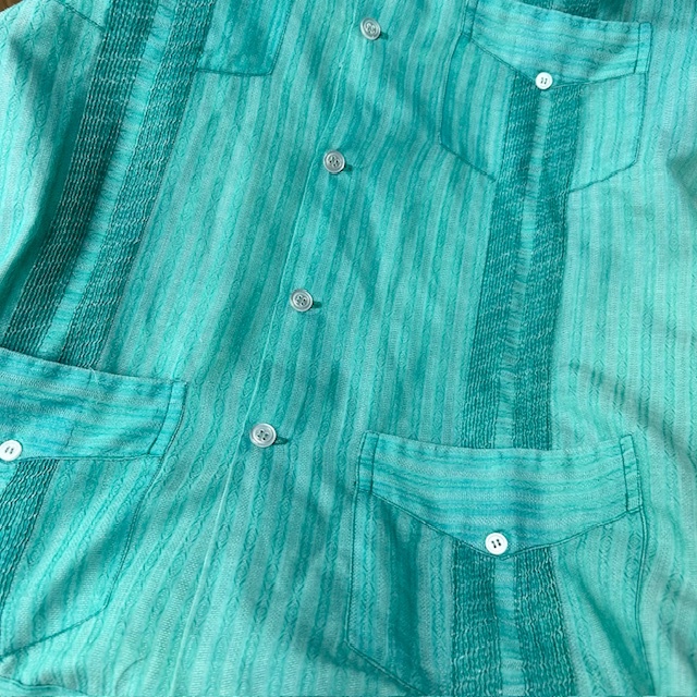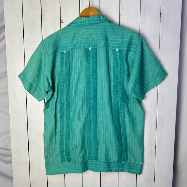sh●992 USA古着 80s90s JAROCHA 柄織り 開襟キューバシャツ 40 薄緑 M~L オールド ヴィンテージ アメリカ メキシコ製 グアテマラシャツ