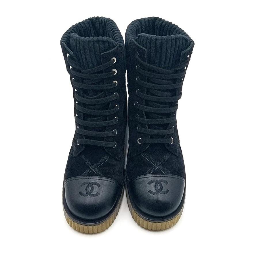 送料無料 シャネル CHANEL ショートブーツ スニーカー G36536 スエード レザー ココマーク 伊製 37C レディース