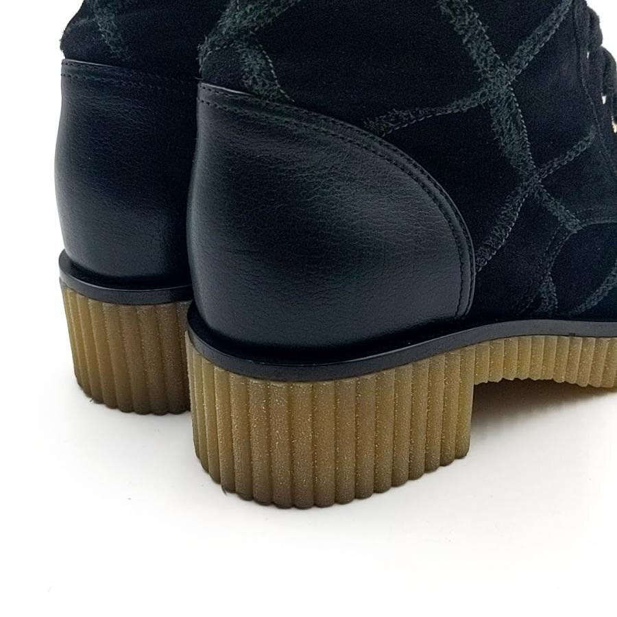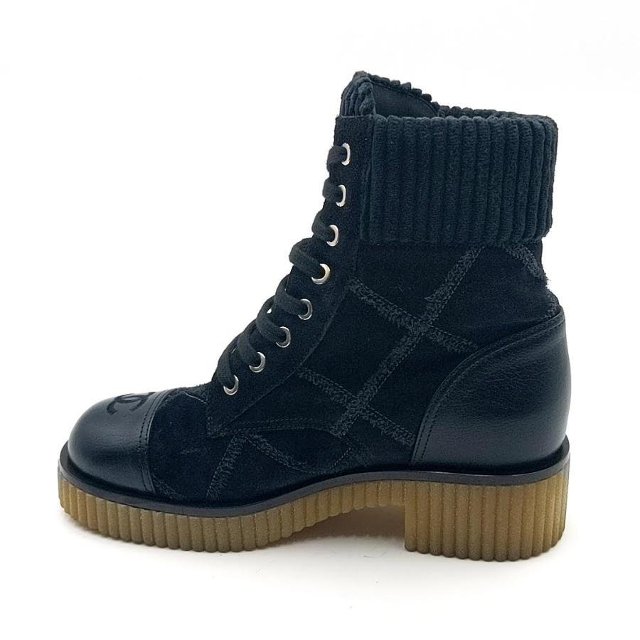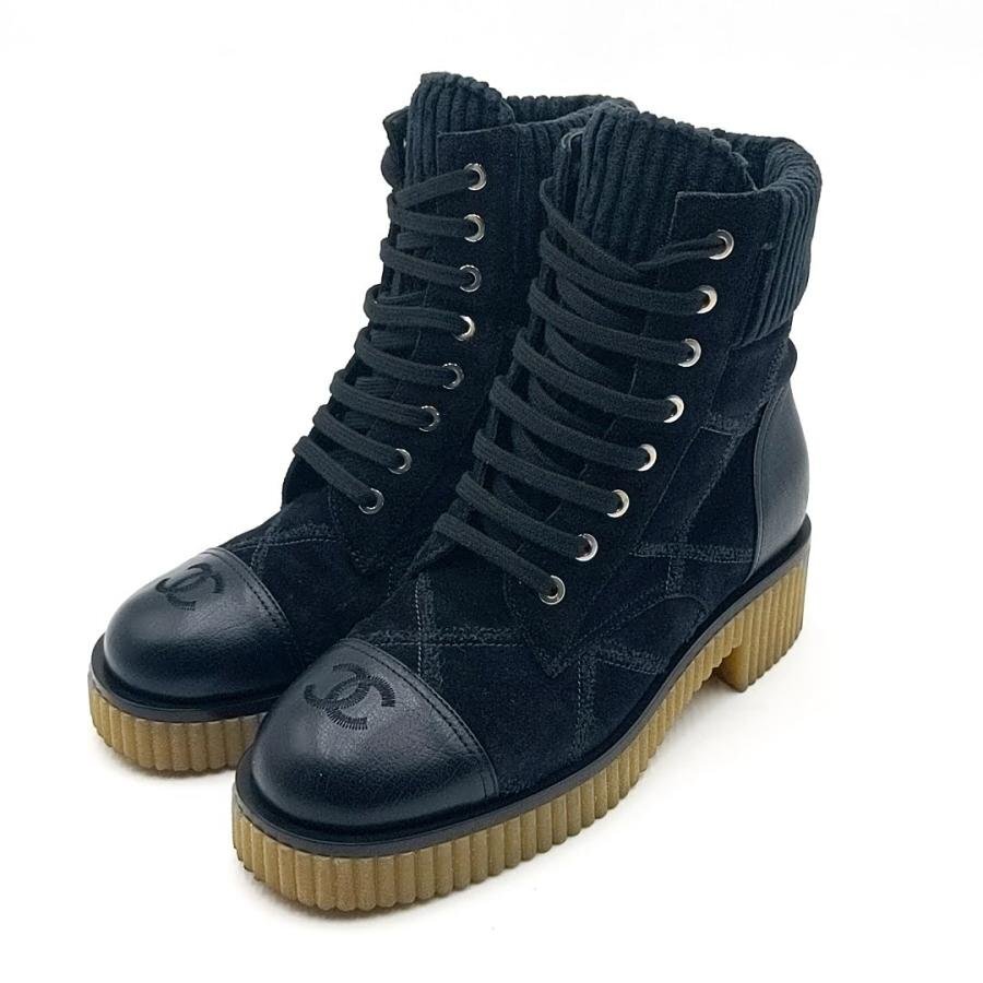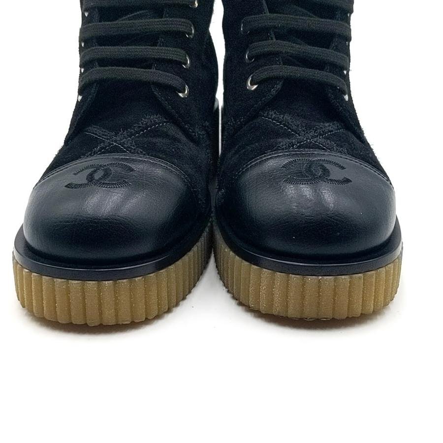 ・送料無料 シャネル CHANEL ショートブーツ スニーカー 靴 シューズ G36536 スエード レザー 本革 ココマーク レースアップ 伊製 イタリア製 37C 24cm相当 黒 ブラック系 レディース