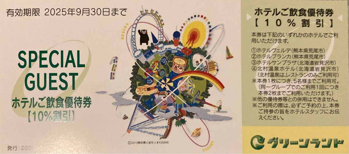 ■グリーンランドリゾート株式会社 株主優待券、ホテルご飲食優待券です。