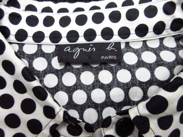 a1576 美品 アニエスベー ドット柄シャツ 水玉 コットン100% モノトーン WHITExBLACK 白黒