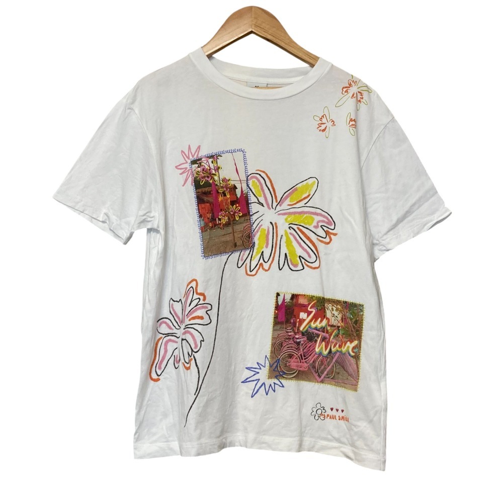 美品 24SS PS Paul Smith ピーエスポールスミス フラワープリント クルーネック 半袖 Tシャツ カットソー M ホワイト