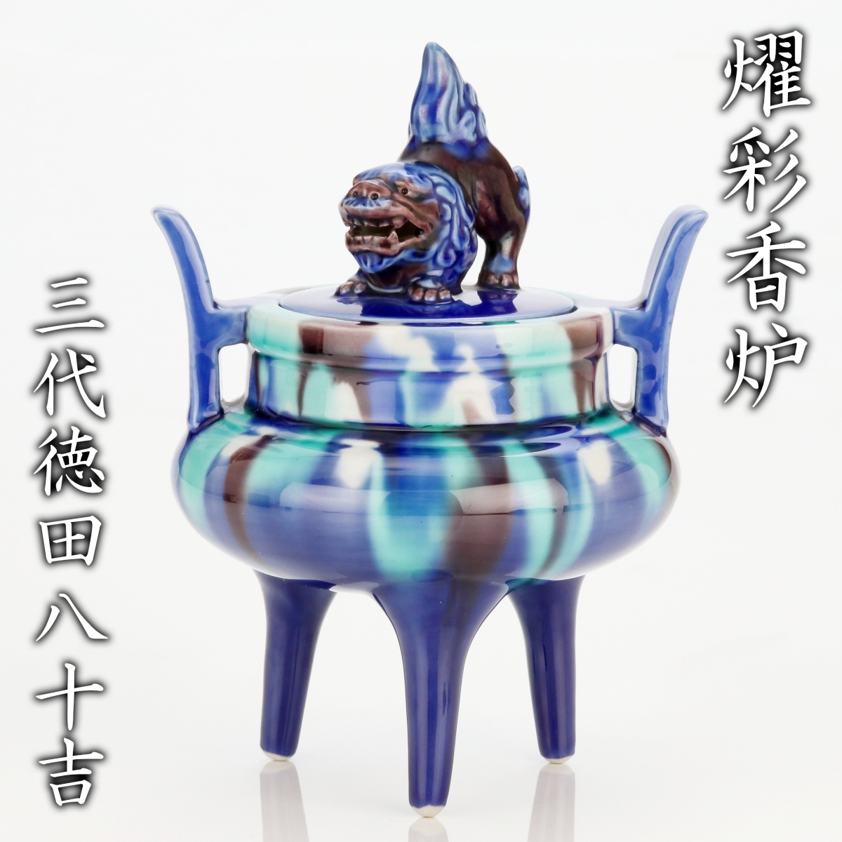 【MG匠】『三代徳田八十吉』燿彩香炉 共箱 共布 栞 本物保証 送料無料