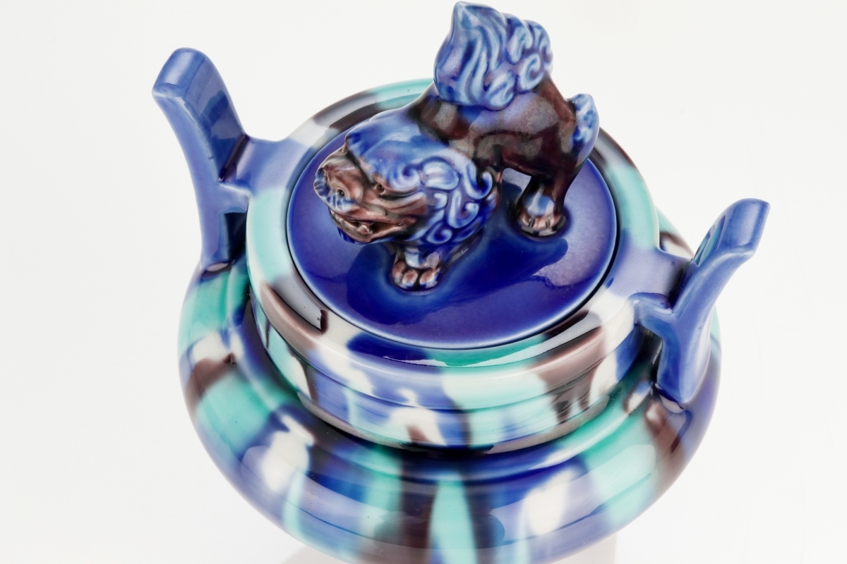 この釉薬の重なりから生まれる深い色彩の妙は、作者の研鑽の全てが注ぎ込まれた、相応しい彩りと言えましょう。