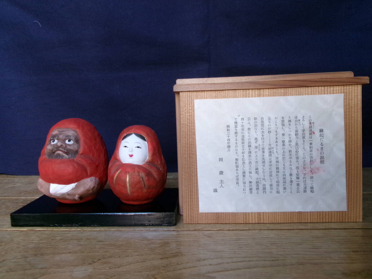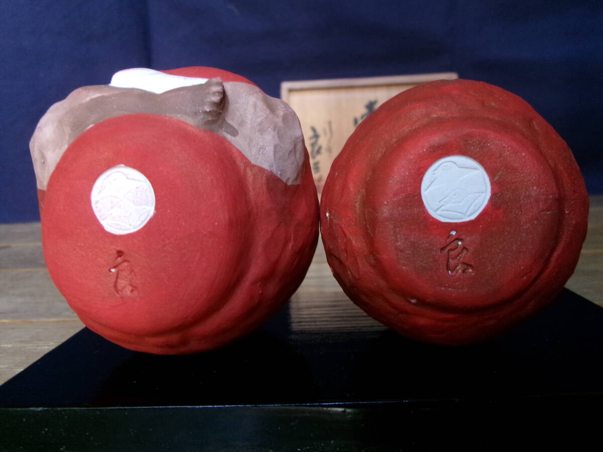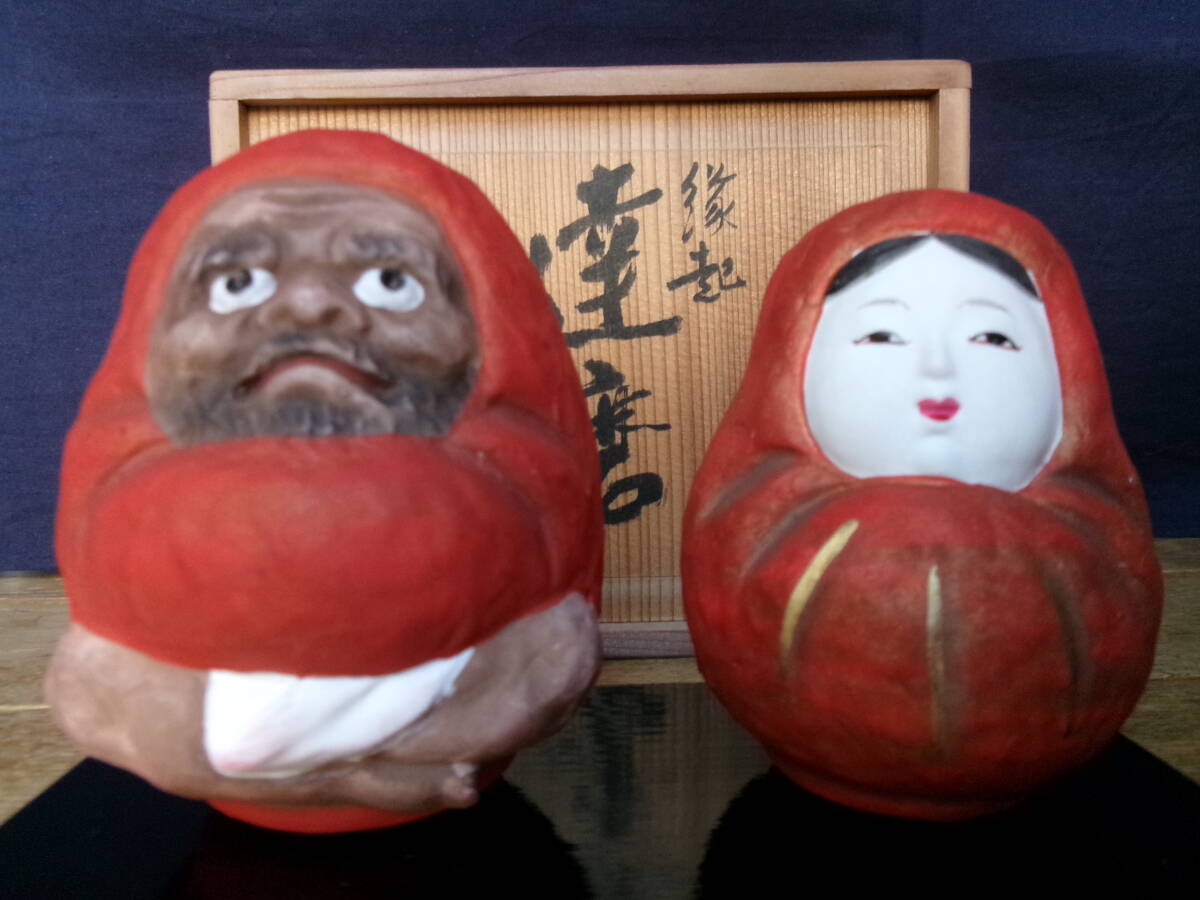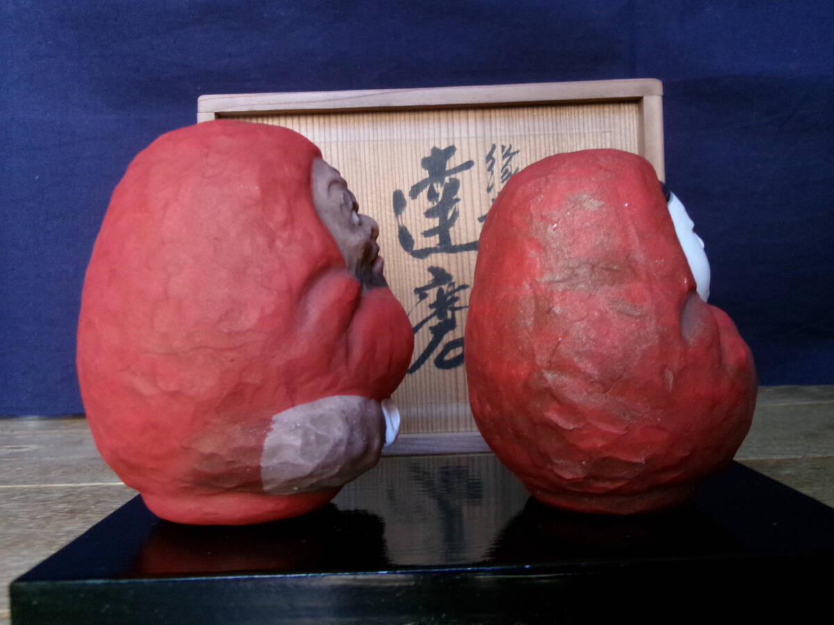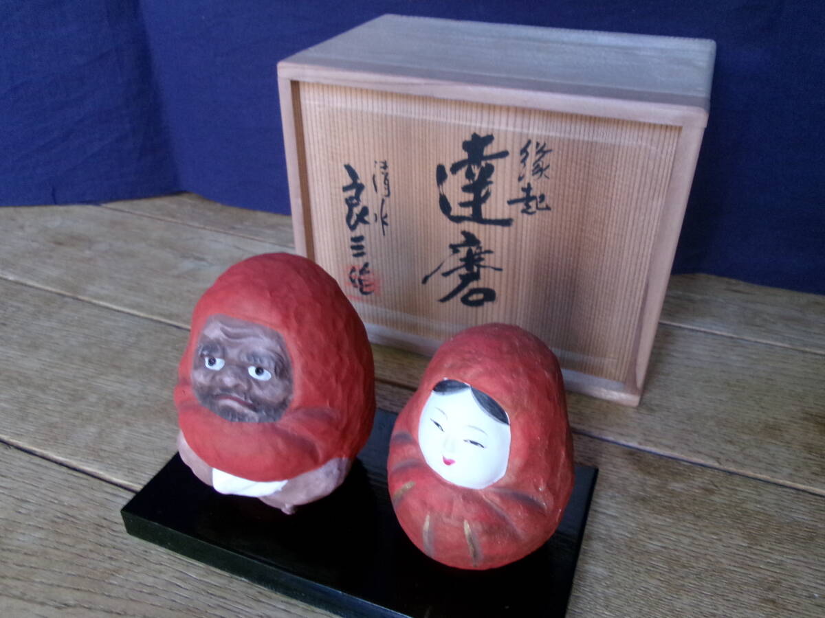 清水焼 良三 作 縁起 達磨 ダルマ 共箱 縁起物 夫婦達磨 置物