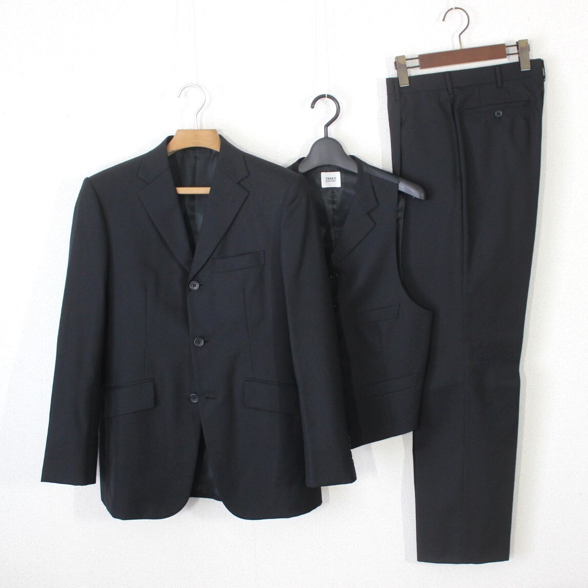 31【新品同様】タケオキクチ スリーピーススーツ 2 メンズ Y5 スリム体 M ブラック 黒 ジレ付き tqe TAKEO KIKUCHI 秋冬春 ★極美品★