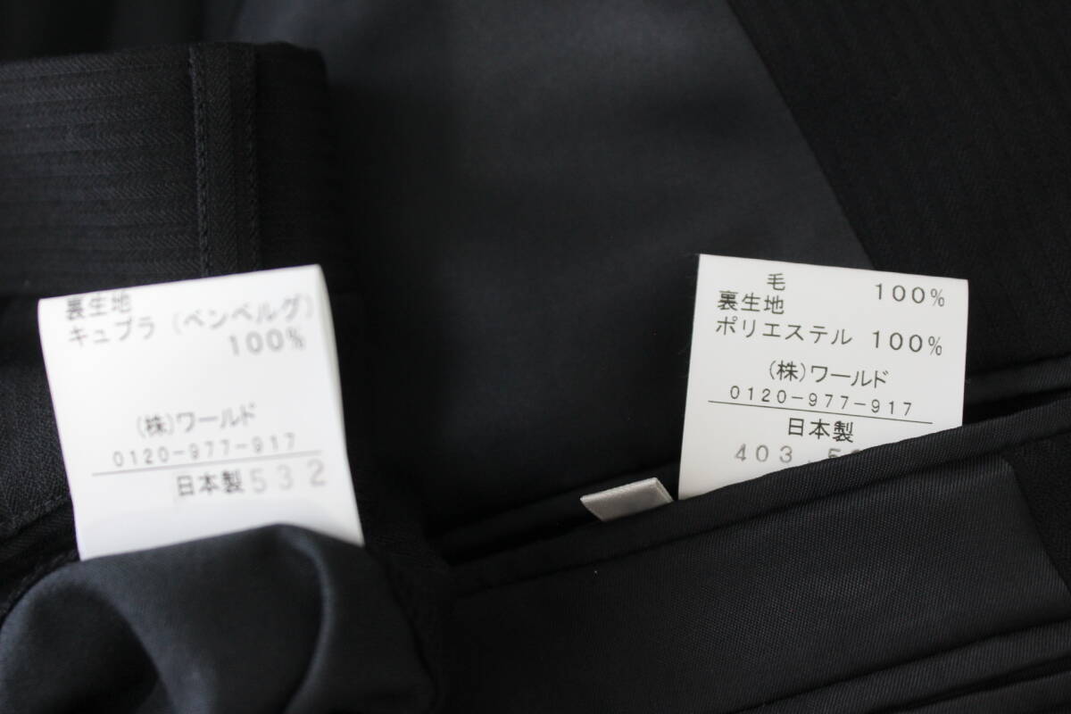 ■ サイズ:【ジャケット】<表記サイズ>  2 (ブランド公式サイトによると,M サイズ 身長 170 バスト 91 ウエスト 76 ヒップ 92 に相当します。一般的な日本のスーツサイズで,Y5 か,スリム体の M くらいです)