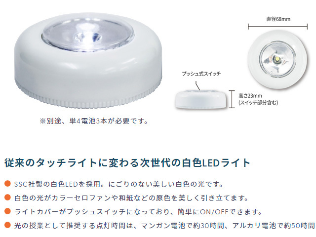 ライトカバーがプッシュスイッチになっており、簡単にON/OFFできます。