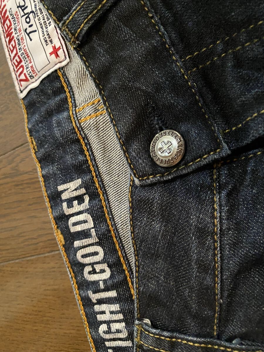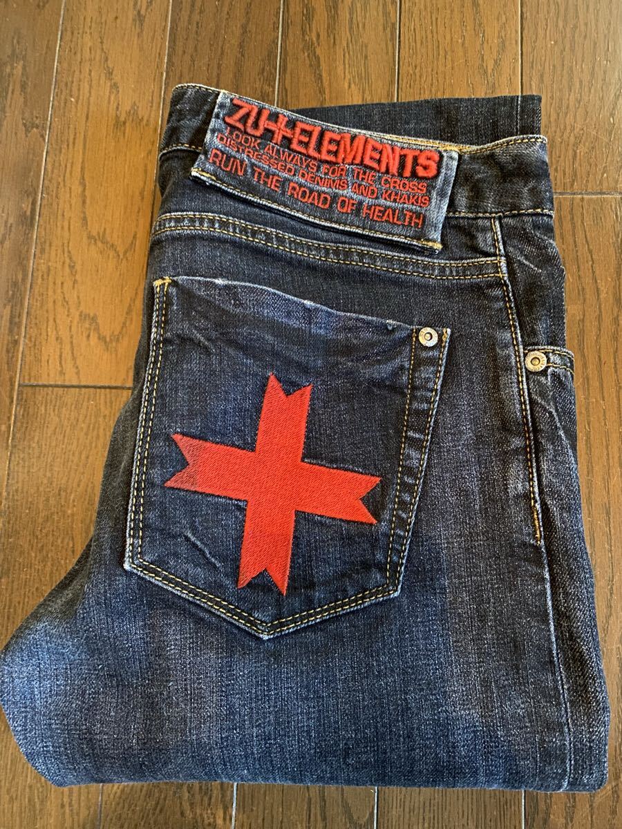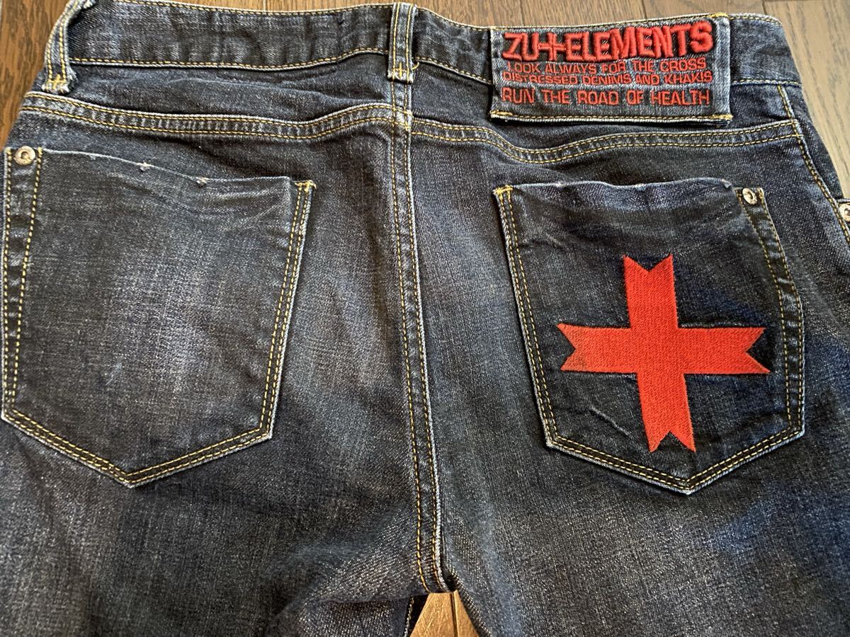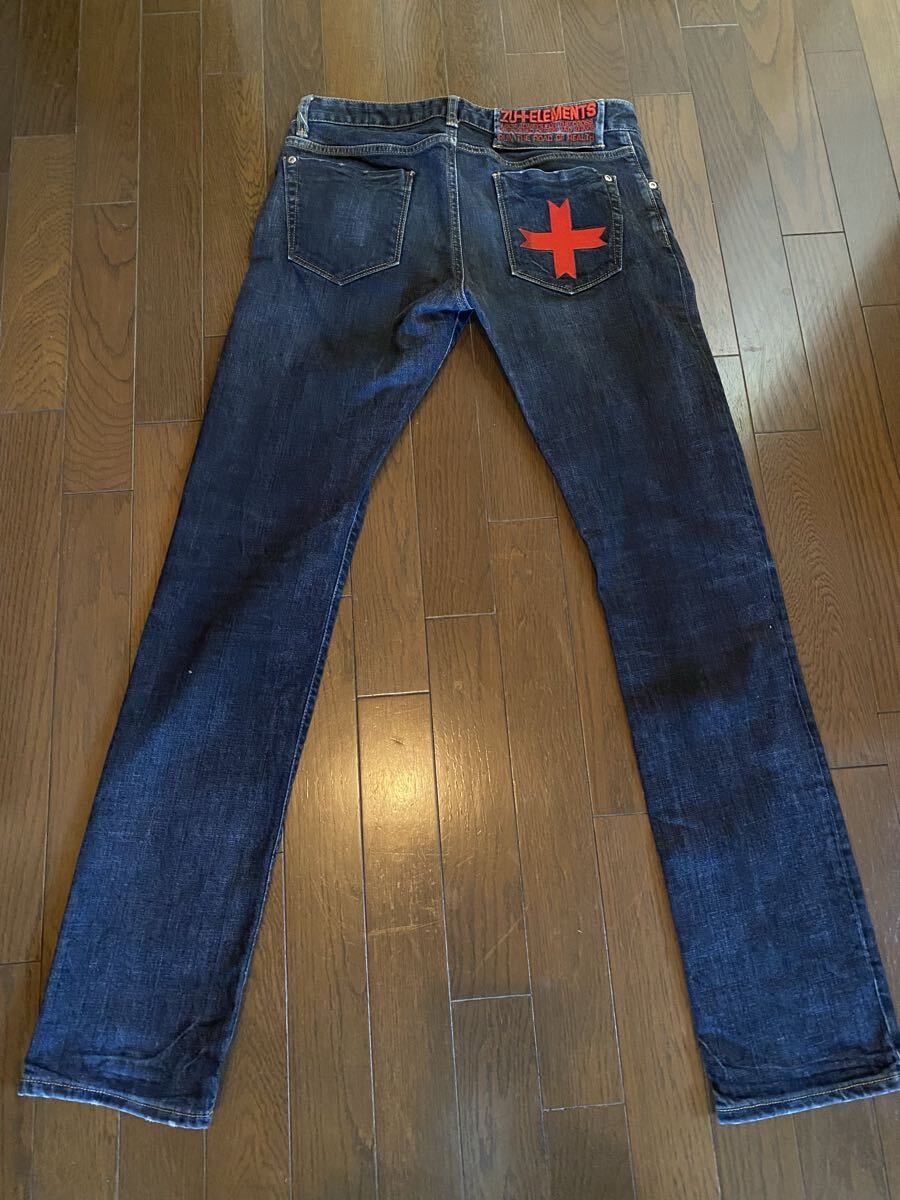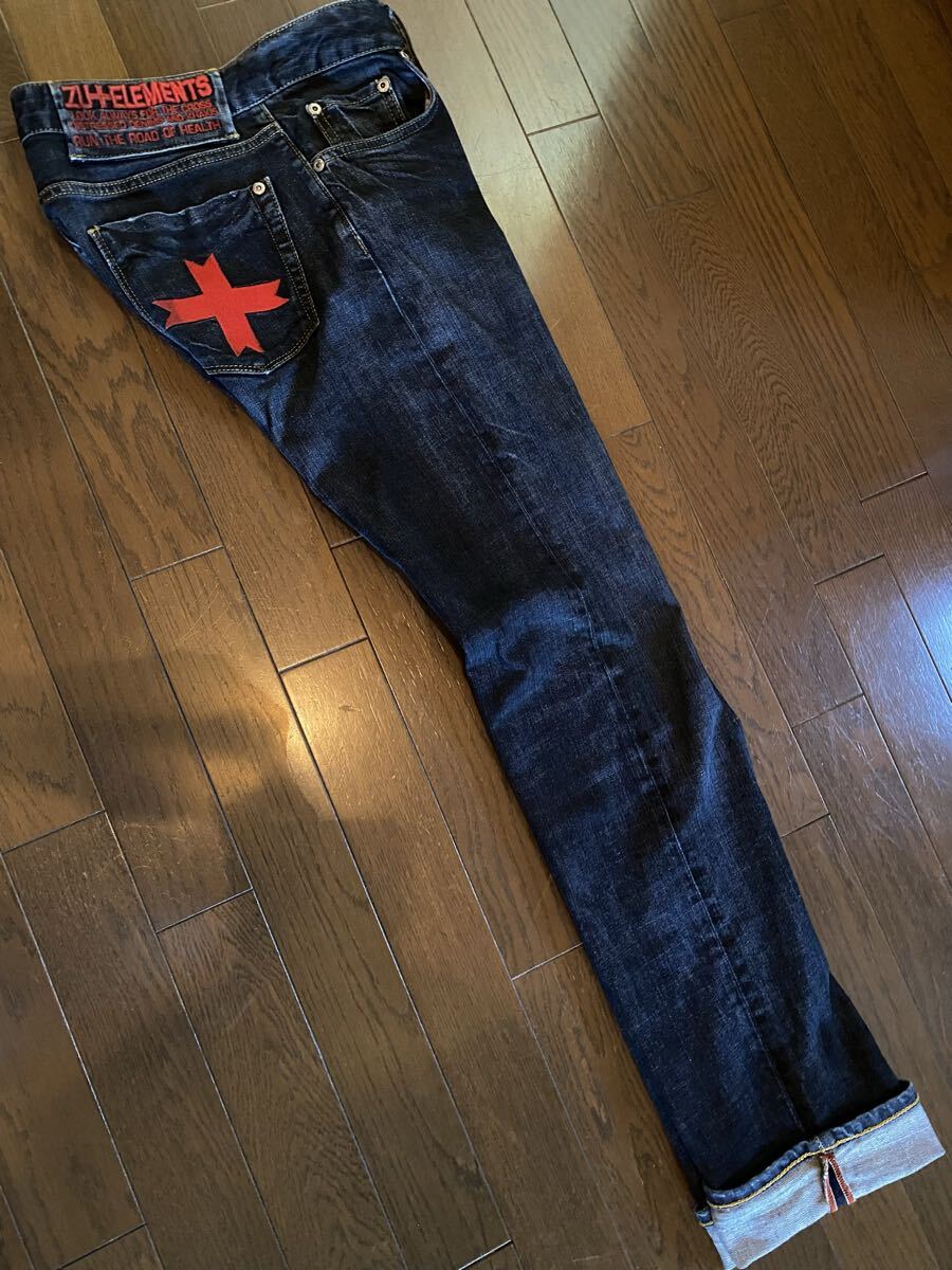 ☆使用感少ない美品ですvintage wash加工以外のダメージはありません。何年も履いたようなナチュラルエイジング、ヒゲやサイドシームのあたり感、…しっかりしたバリッと硬めのデニム生地と製法、カッコ良いデザインのボタンにフロントボタンフライ、シルエットはスキニーみたいな細さではなくストレートスリム、テーパードストレートと言った感じでカッコ良いアイテムです。ロールアップすると、さりげにズーエレメントのロゴが見えてオシャレ。ポケット袋が花柄デザインや刺繍パッチ #クロス #十字架 刺繍が特徴的で渋いモデルです。