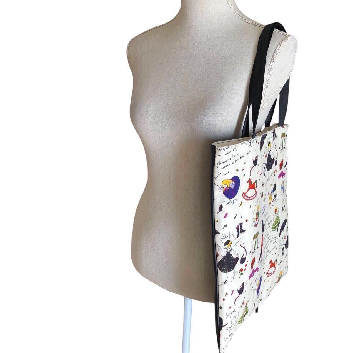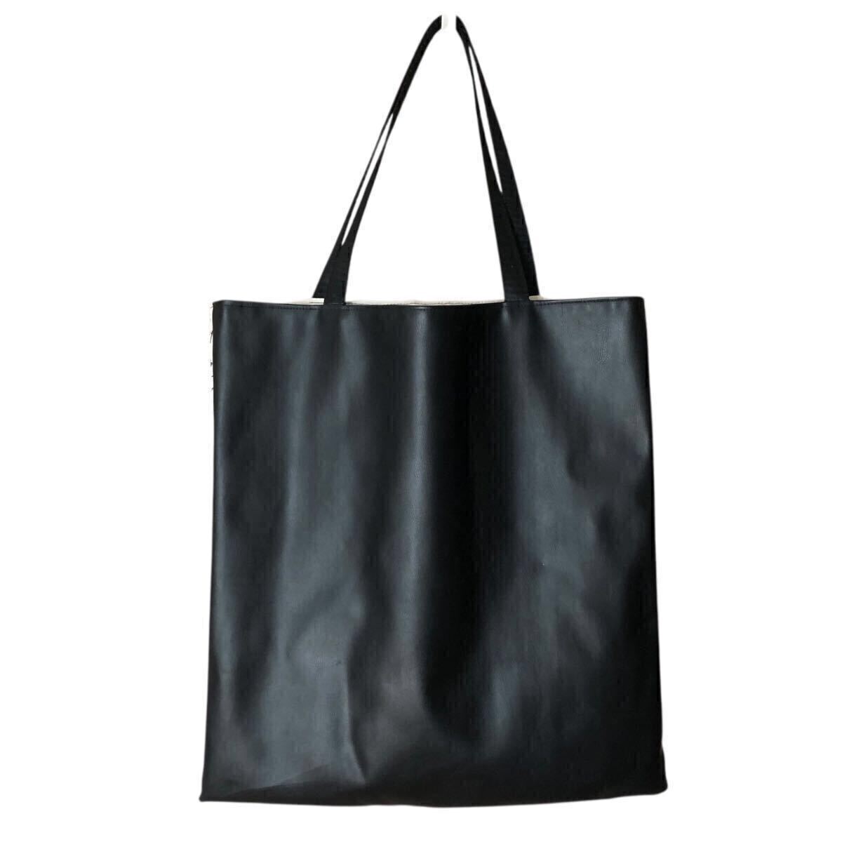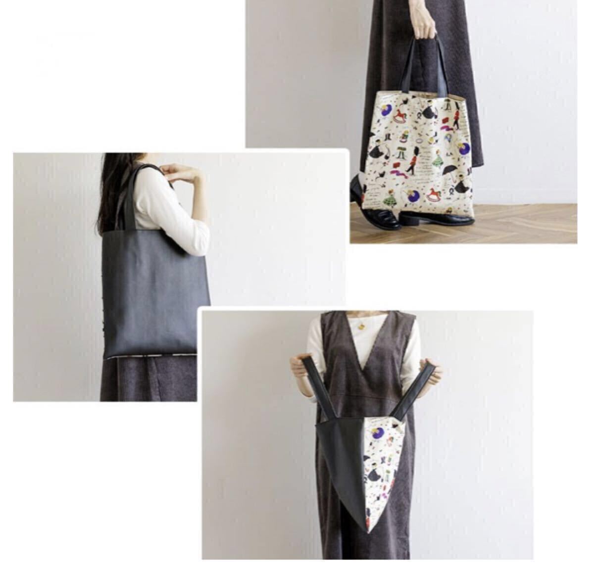 前面と後ろ面の生地を変えた、シンプルながらデザイン性の高いバッグです。