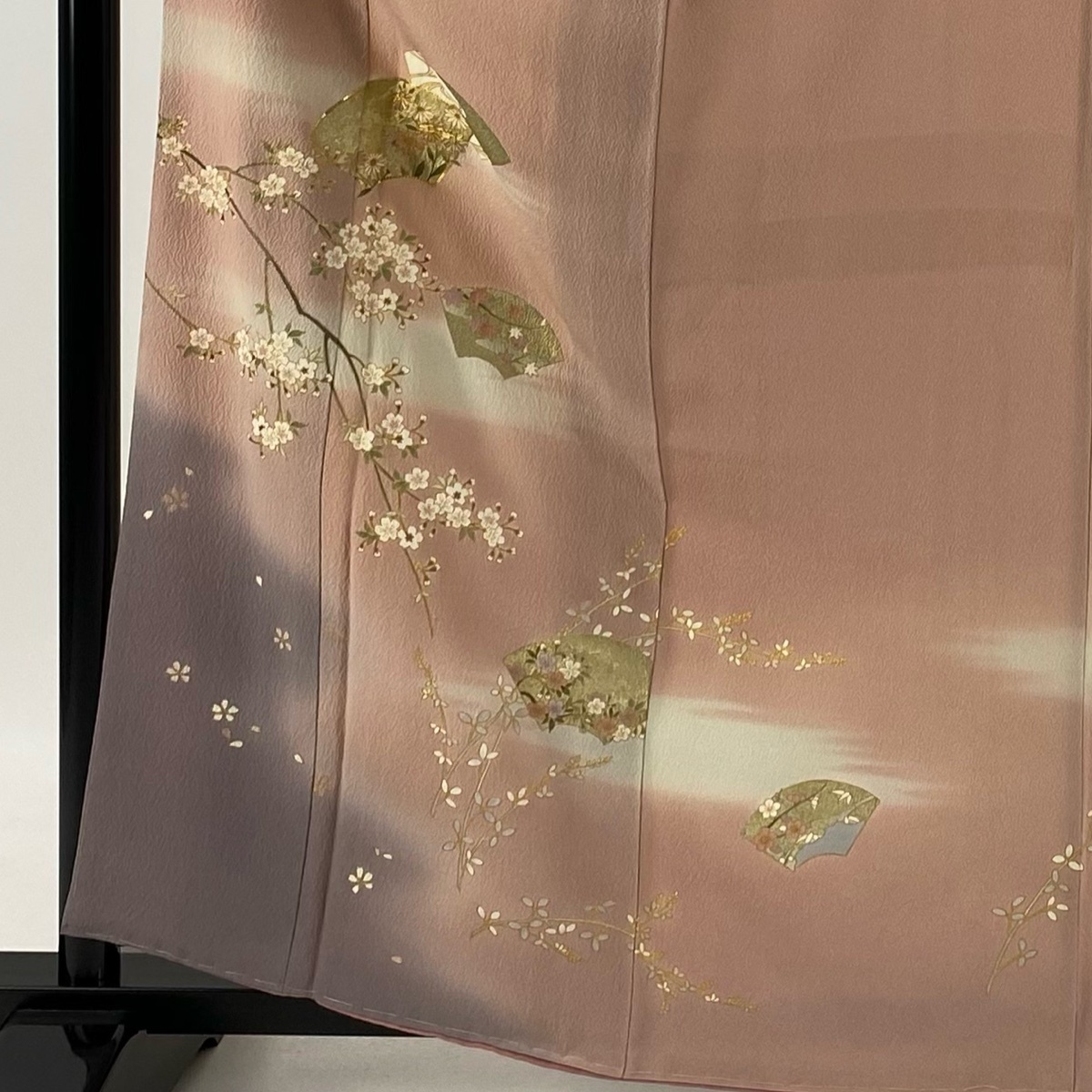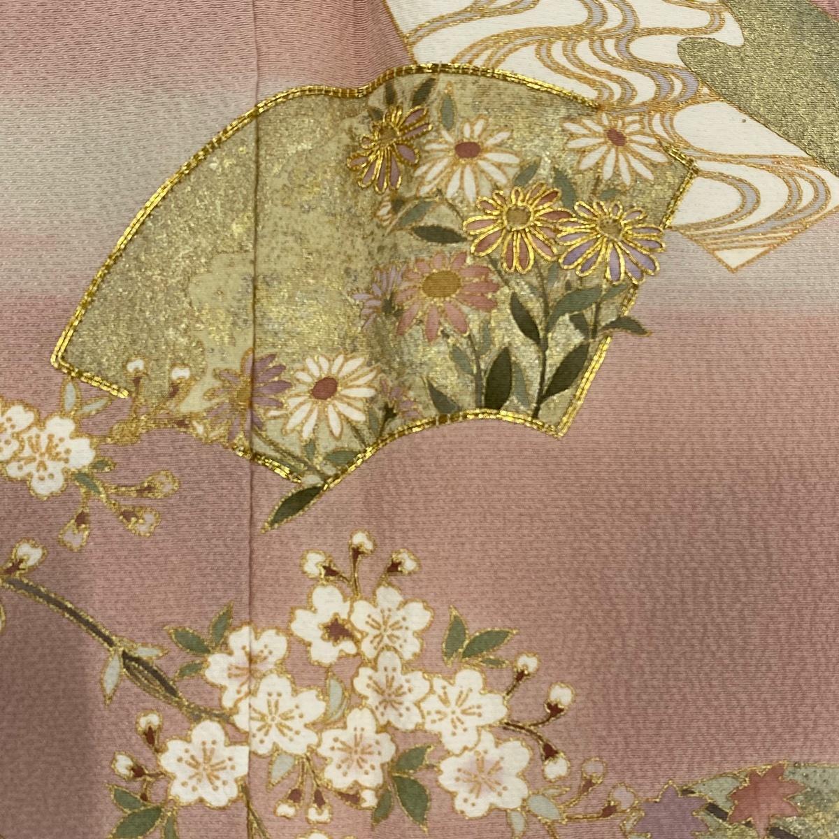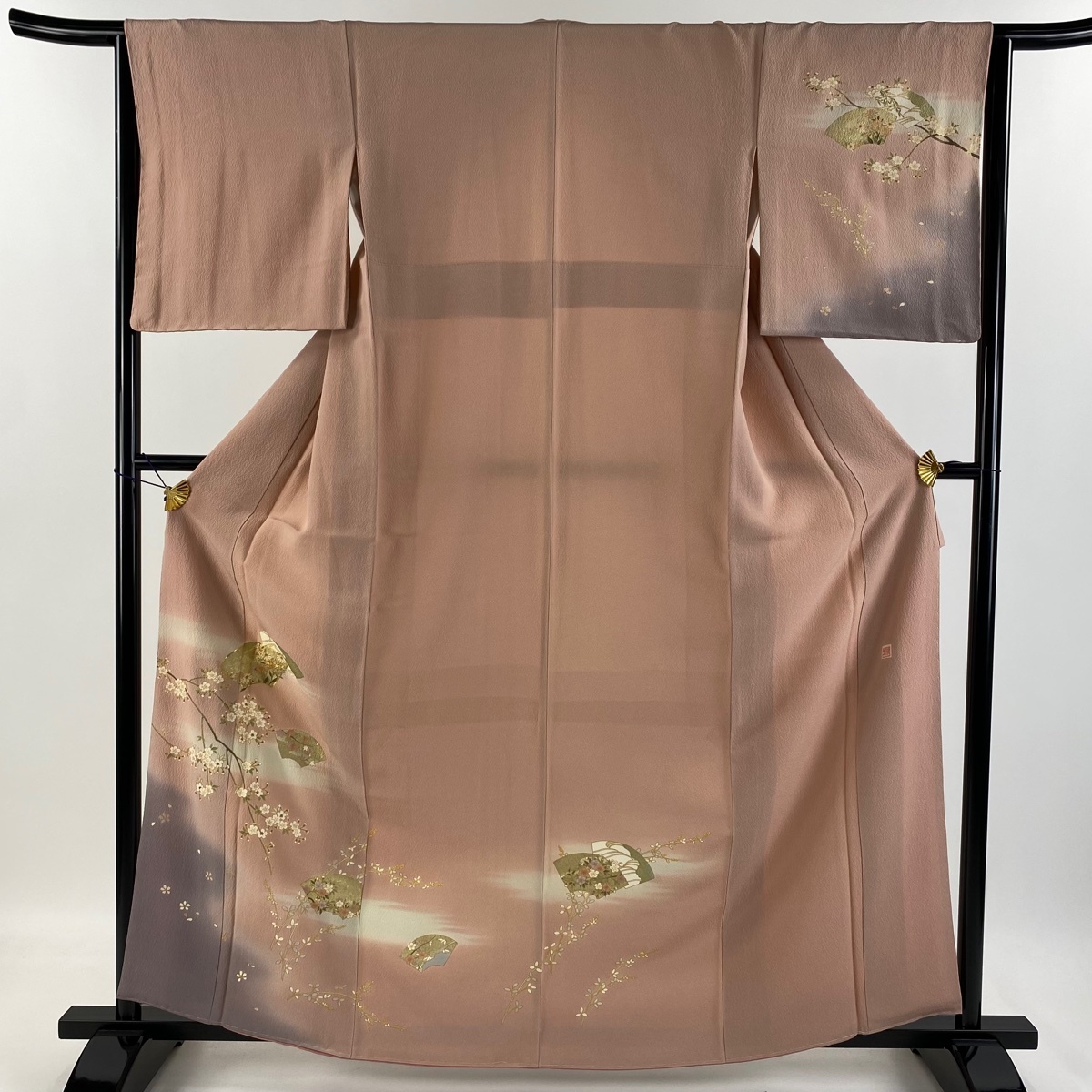 | 訪問着 秀品 落款 やまと 扇面 桜 金糸 金彩 ピンク 袷 身丈162 裄丈64 M 正絹 【中古】 |