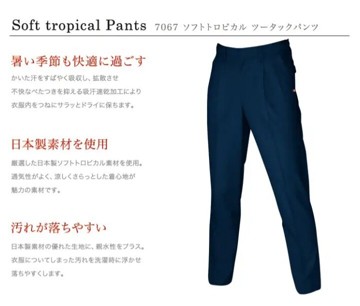 4669 BURTLE|7067 ツータックパンツ|シェル|W88㎝|春夏|新品未使用|吸水速乾|防汚加工|帯電防止|清涼通気|綿ポリ混紡|作業ズボン|バートル
