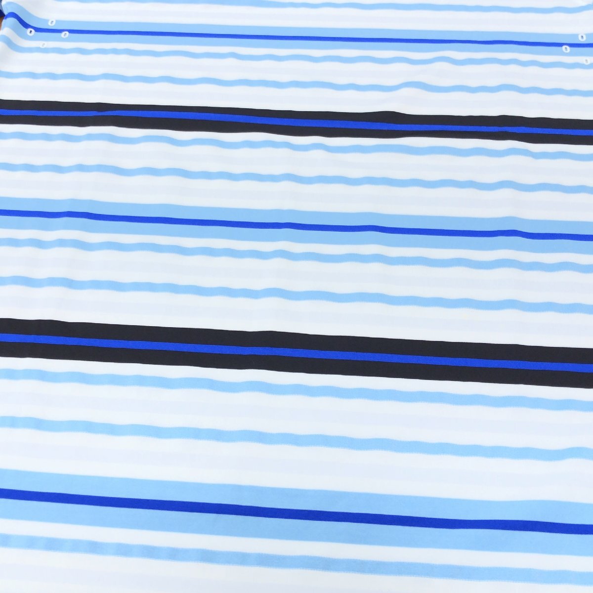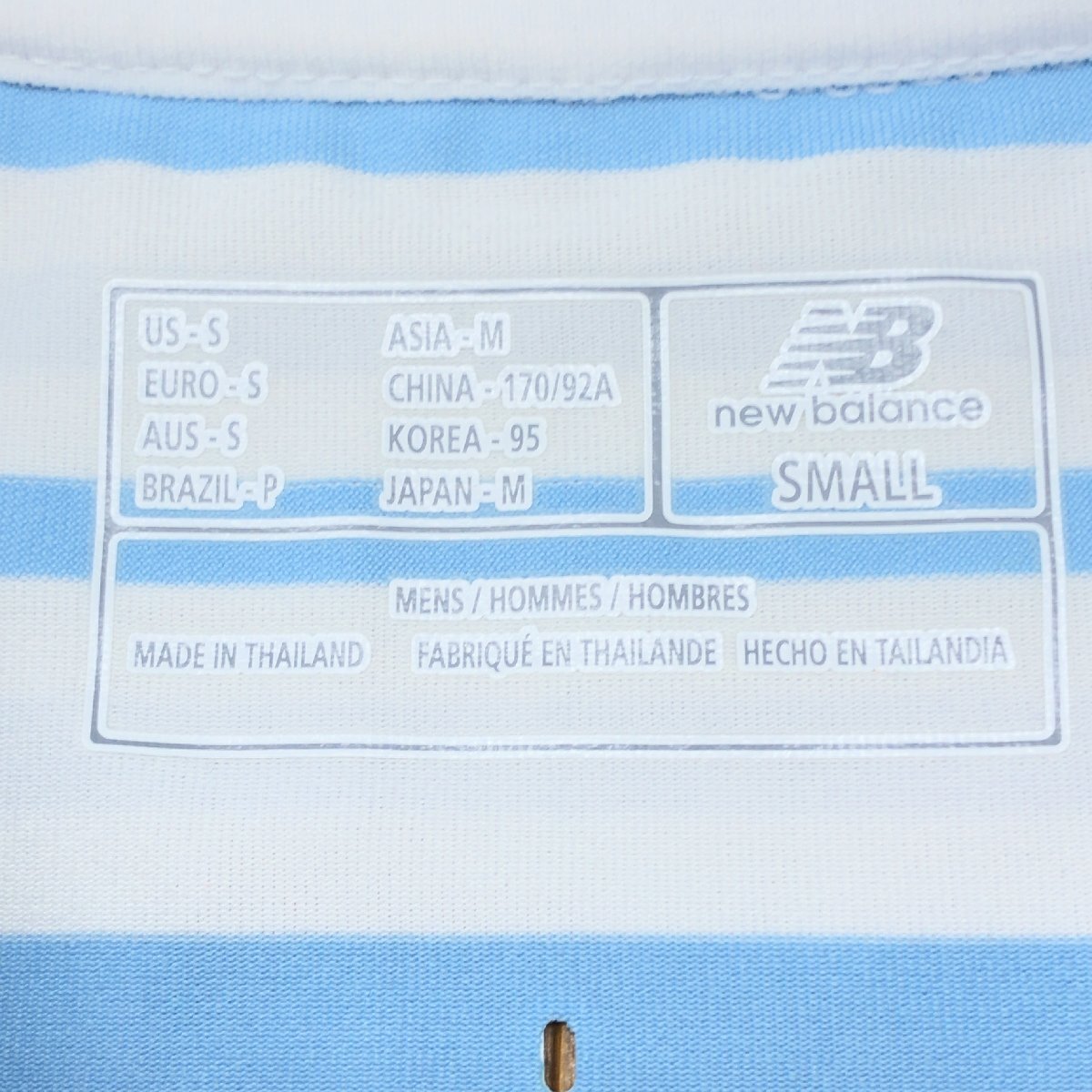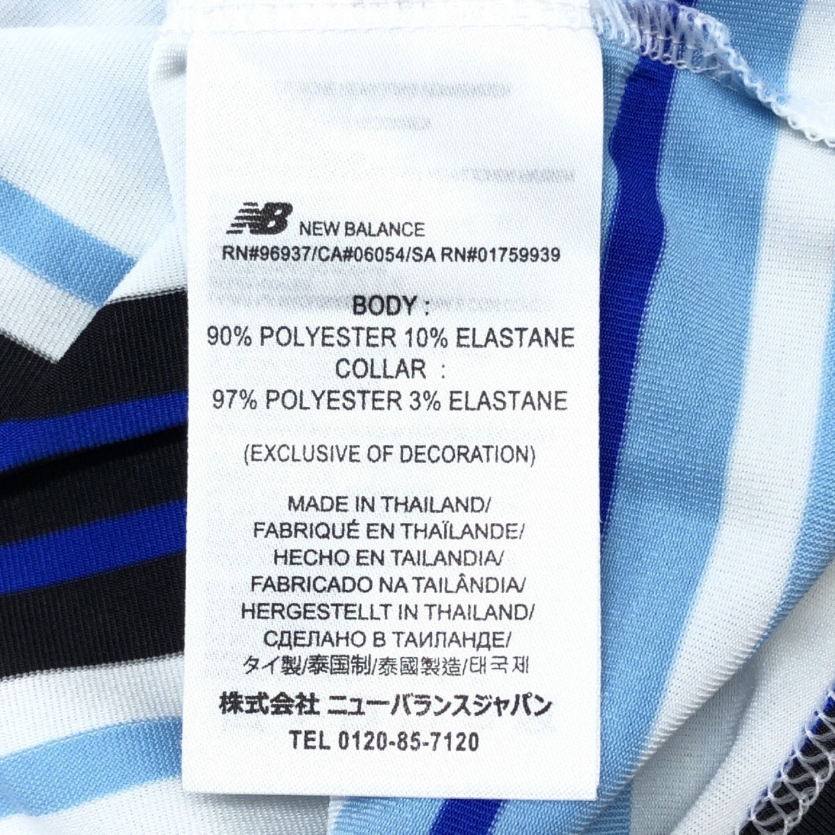 美品 New Balance ニューバランス ストレッチ ドライ Vネック トレーニングシャツ S 白×ライトブルー 半袖 ボーダー Tシャツ ジャージ