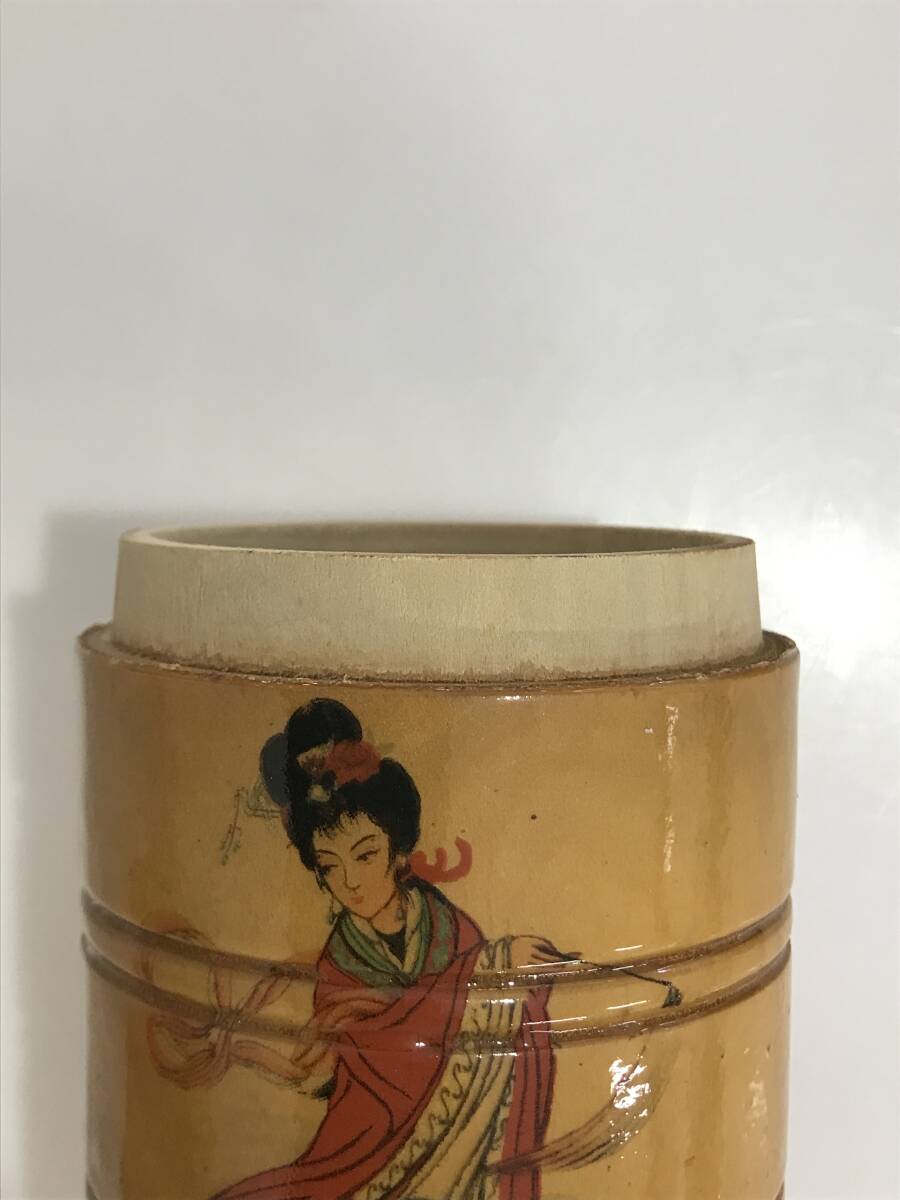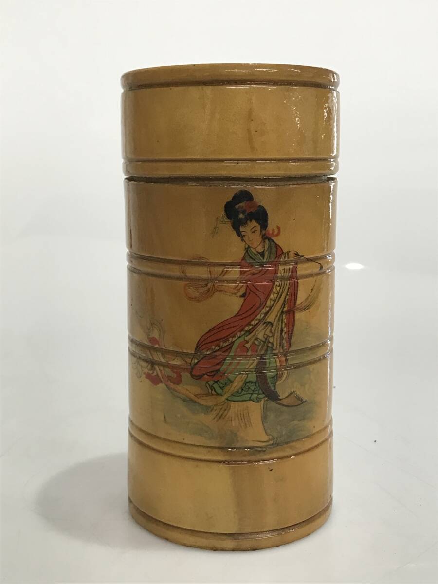 | 商品名 | 中国製 竹筒 茶筒 女人図 丸型 高さ約18cm 箱なし |