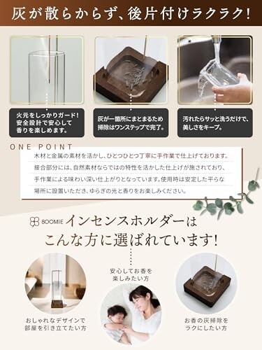 • インセンス専用ガラスシリンダー:透明度の高い特殊ガラスが煙の美しさを引き立てます。