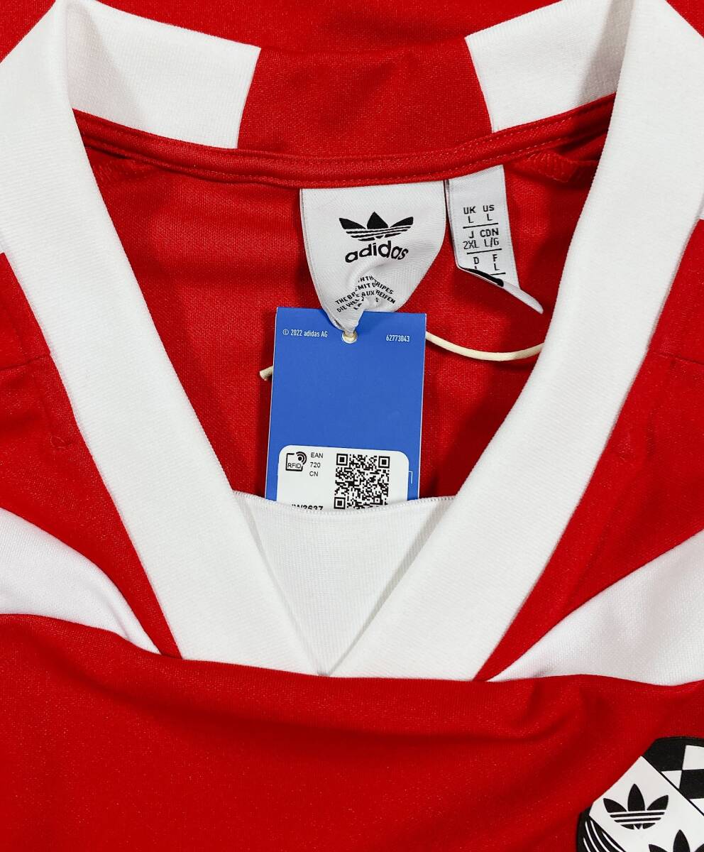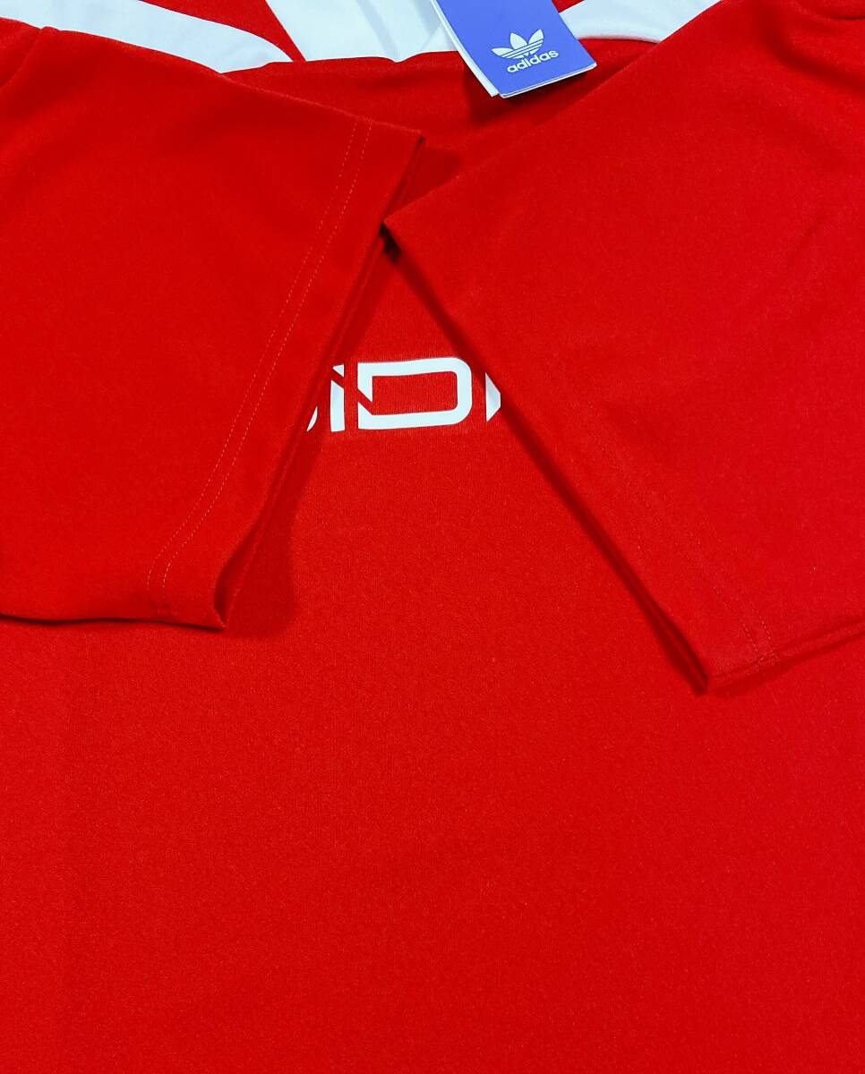 即決sale 日本未発売 adidas 赤白 五分袖サッカーウエアシャツ L (US-FIT) US輸入古着 LG-300
