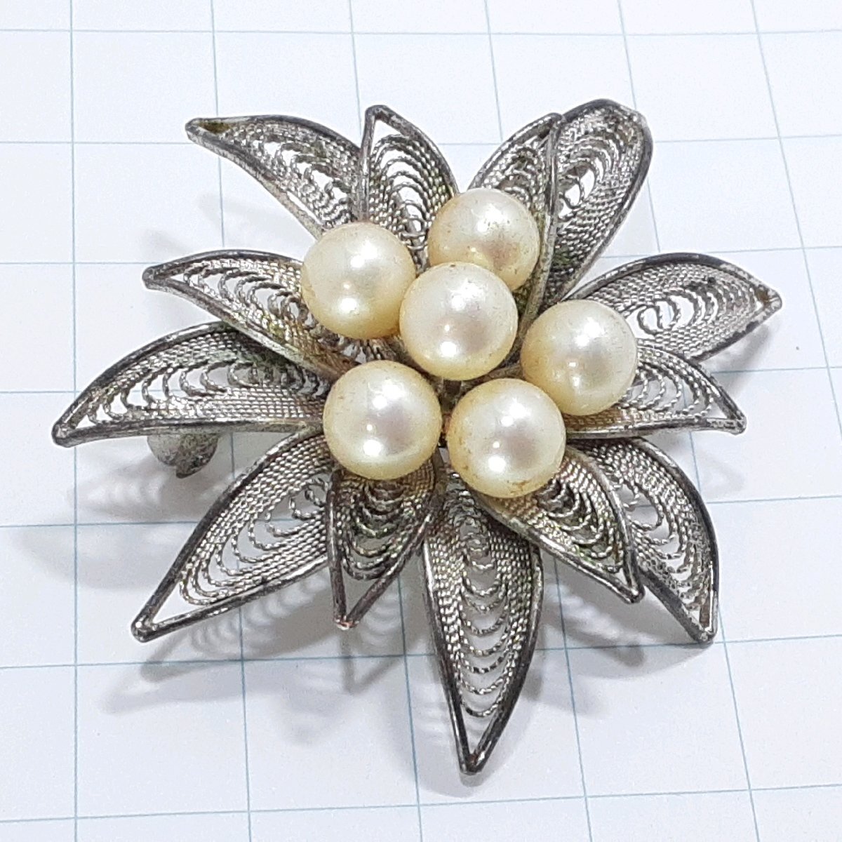 送料無料)ビンテージ☆パール お花モチーフ☆アンティーク ブローチ A31186